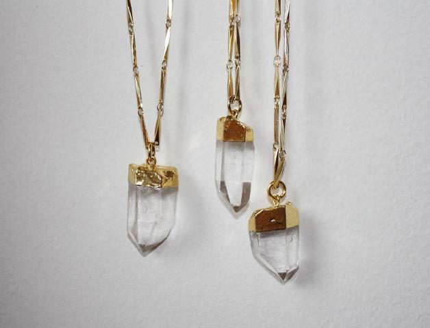 Collier cristal de roche plaqué or – 59 €