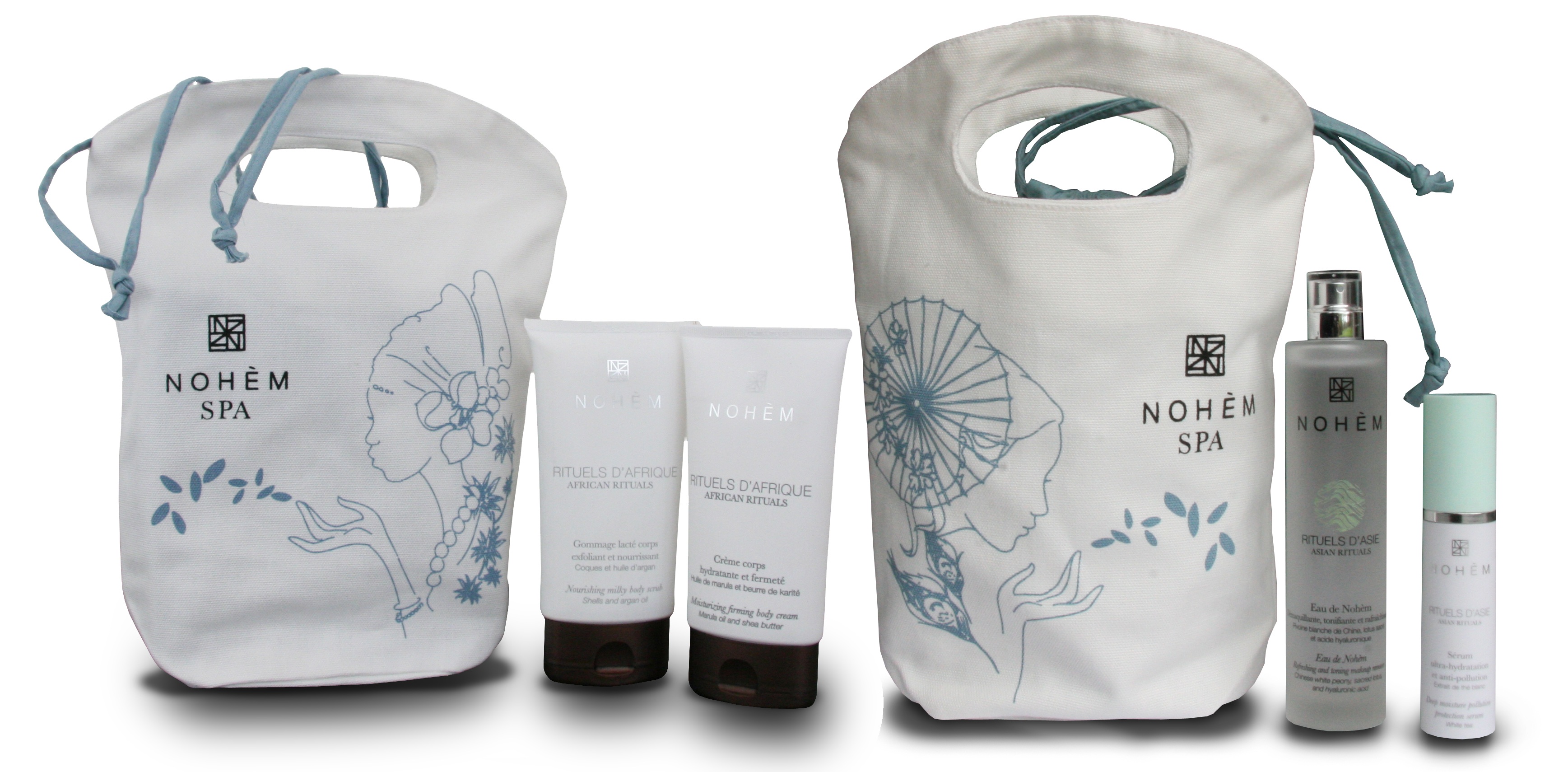 Nohem c’est une marque qui mise sur le glamour et l’éthique pour proposer des soins résolument astucieux. Les deux coffrets proposés par la marque sont en coton bio et sont inspirés de l’Asie et de l’Afrique. Les sacs sont fabriqués en Inde de façon éthique.
