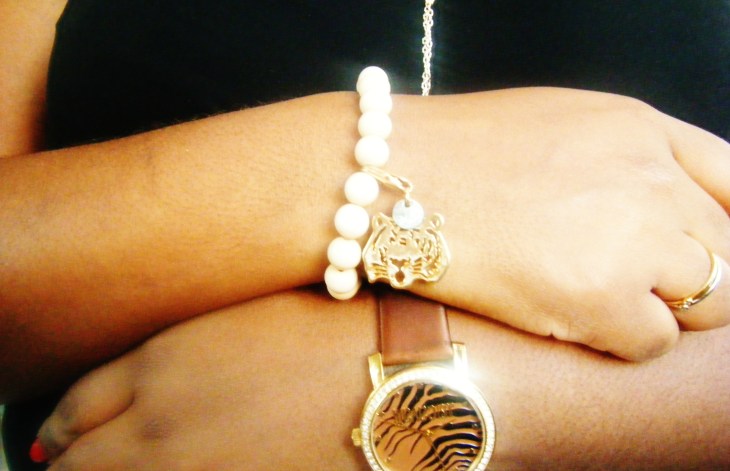 Il a l’air simple mais ce bracelet issus tout droit du vestiaire coloré et eclectique de tellemere-tellefille ne l’est certainement pas. Il fait partie des bijoux que je qualifie de bijou Bestiaire. Composé de perles et orné d’un beau tigre, c’est le premier bijou d’une petite série que j’aurai l’honneur de vous montrer.