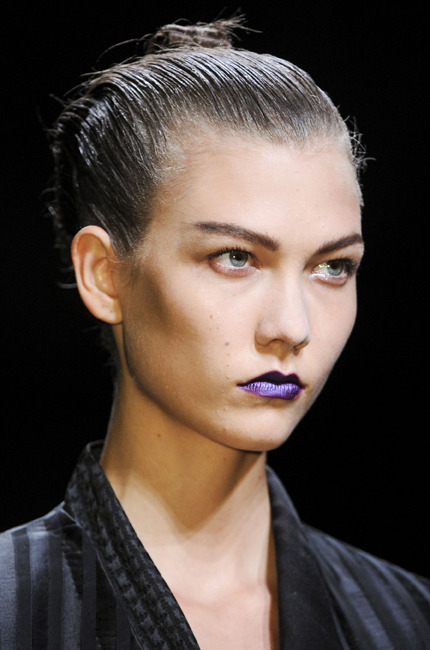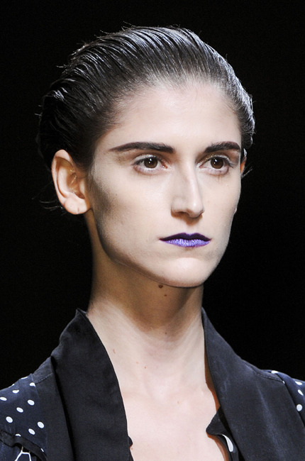 C’est Haider Ackermann qui en a fait le clou de son défilé de la prochaine saison, PE 2013. Il s’agit d’un rouge à lèvres qui donne l’impression d’être malade. Ca donne un côté froid au make up. comme si on avait près de soi un personnage glacial. Normalement, se maquiller les lèvres, c’était surtout pour montrer sa sensualité, son côté sublime. Les lèvres sont bleus comme si elles manquaient d’oxygène, comme si le froid était perçant. Le personnage mis en avant par Haider Ackermann durant son défilé semble un peu venu du futur comme si la passion était absente.