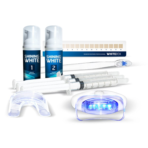 - 1 Kit d’Entretien Shinning White (30 jours): 1 Flacon de Mousse Nettoyante de 50 ml qui remplace le dentifrice + 1 Flacon de Mousse Blanchissante de 50 ml qui prolonge et intensifie le blanchiment.