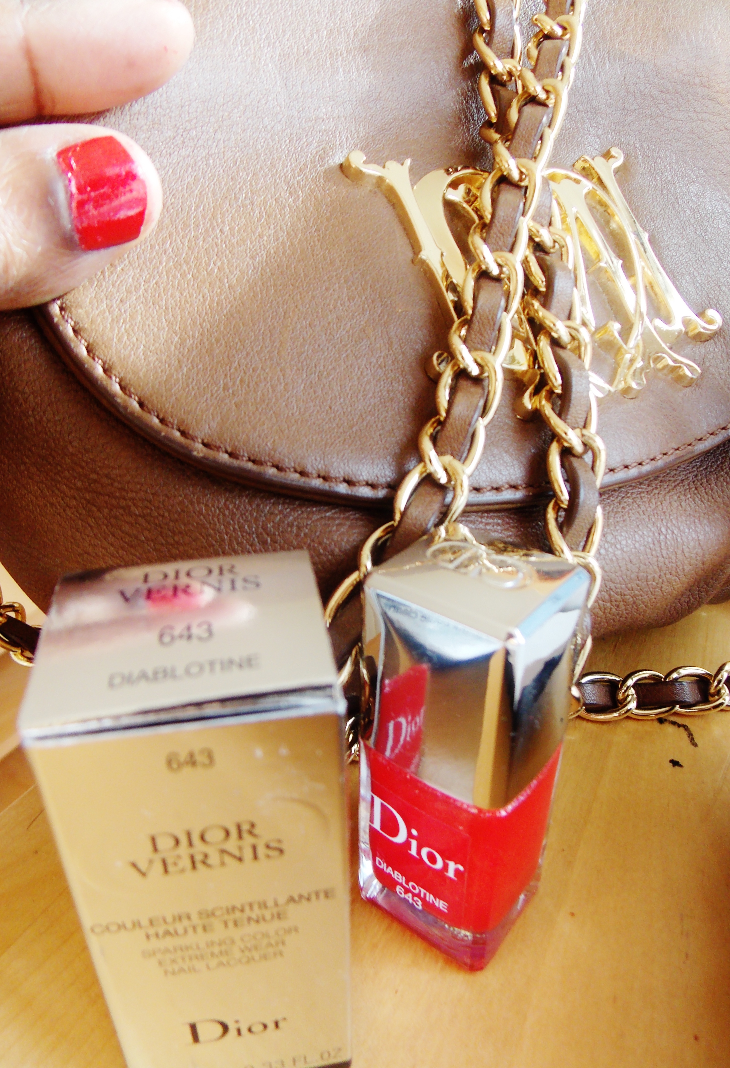 C’est ce que l’on retrouve avec le vernis Dior Diablotine. C’est un rouge orangé plutôt vif mêlé de micro-paillettes qui en fait un vernis brillant et davantage au soleil. Nul besoin de top coat, je vous assure. Il est merveilleux nu.