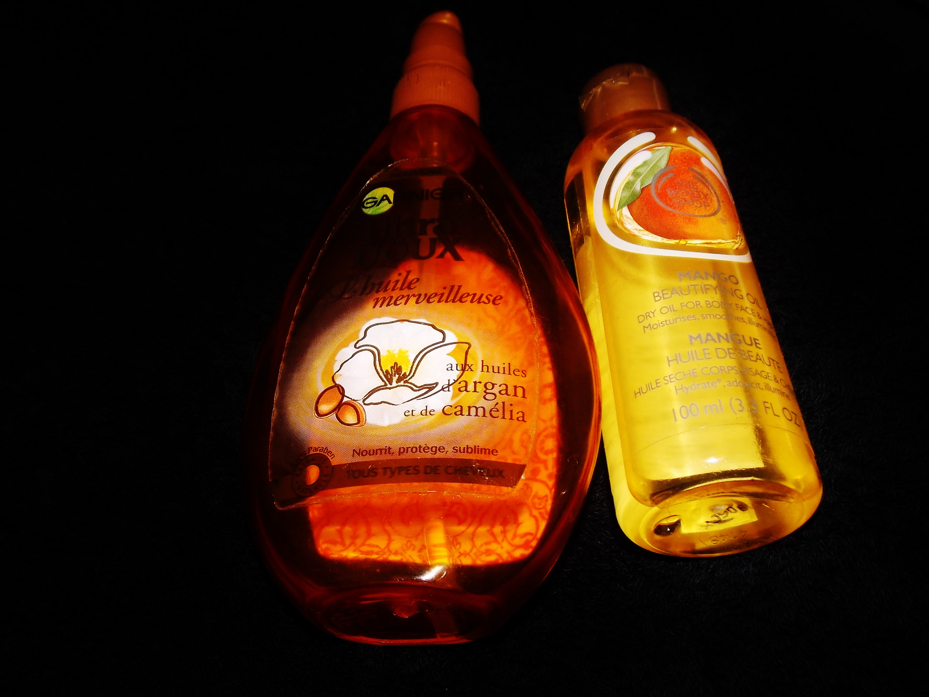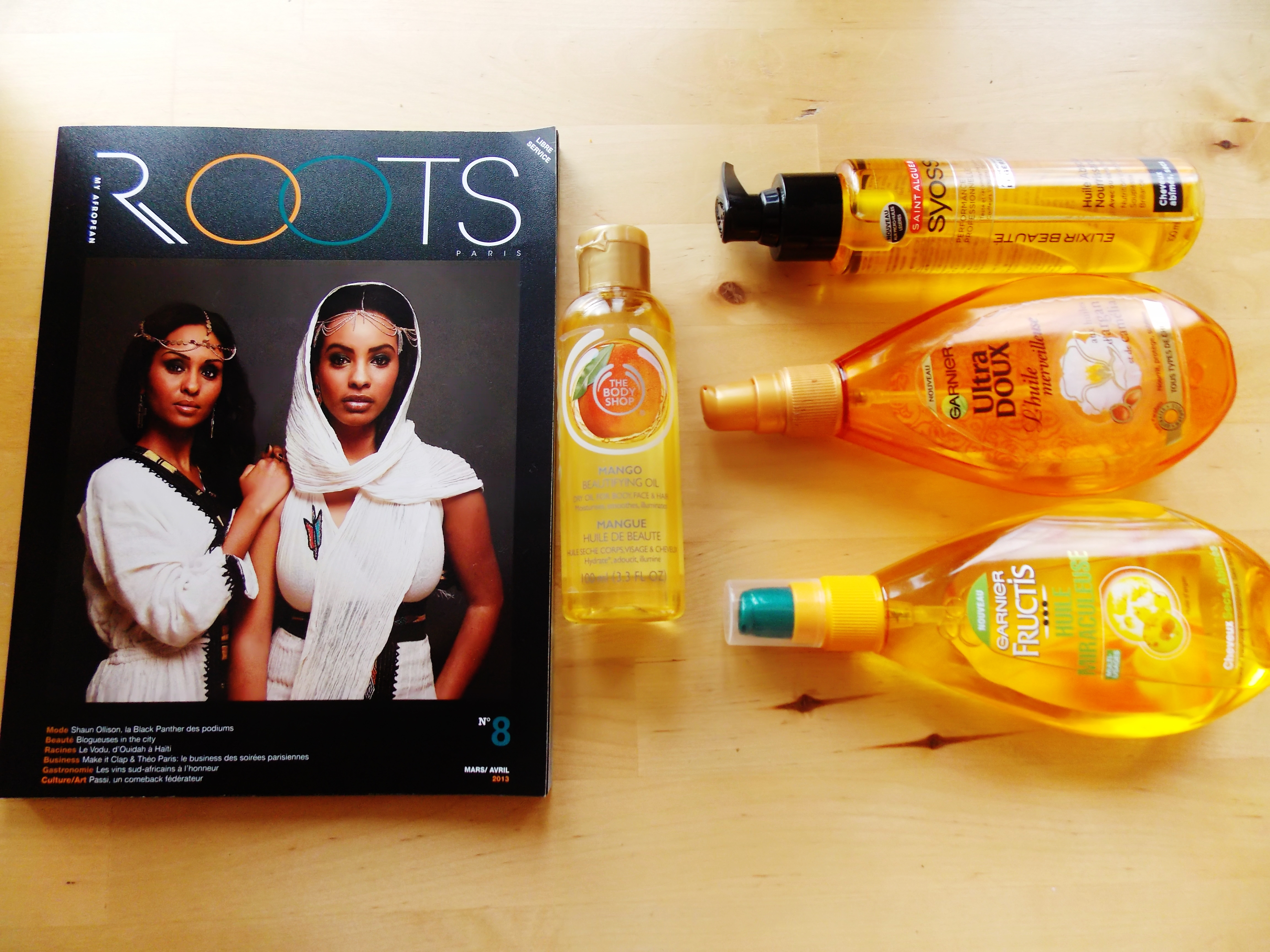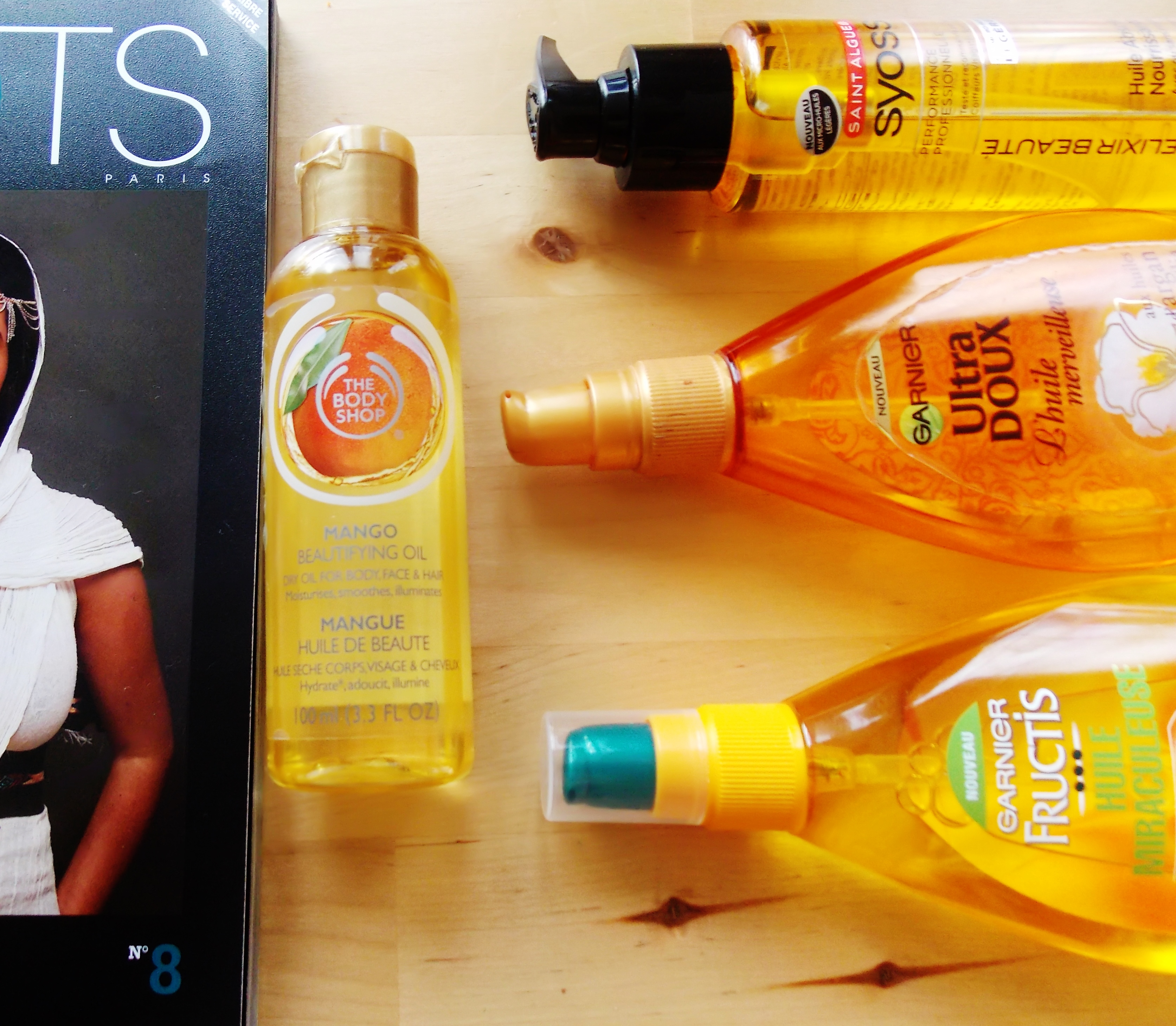 Mon astuce : les huiles. J’ai fait un plein en grandes surfaces et shoppé Garnier Ultra doux, Syoss, Body Shop et Garnier Fructis. En terme de texture, les huiles se ressemblent toutes sauf celle de Body Shop qui est aussi conçue pour le corps.