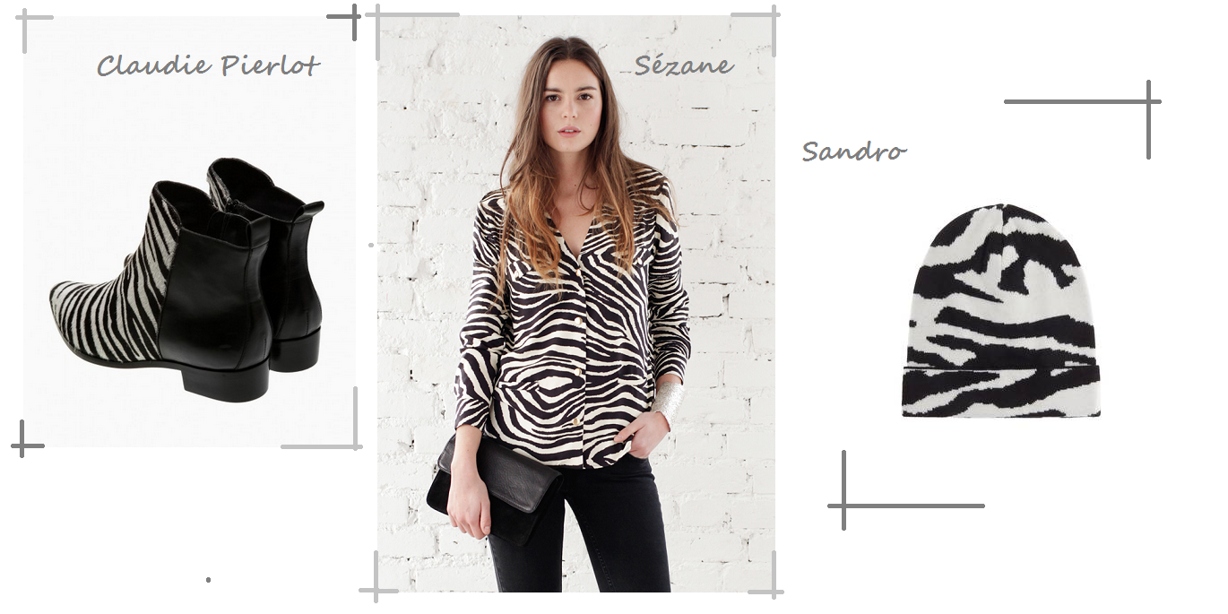 Avec l’imprimé daim cher à Givenchy (pensez au sweat Bambi), l’imprimé zebré nous montre que la tendance bestiaire a de beaux jours devant lui. On l’aperçoit chez Sezane, Claudie Pierlot ou encore Sandro.