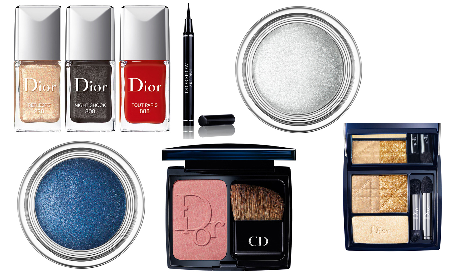 C’est un maquillage à manier avec dextérité. Le fard blanc n’est pas un make up de jour. Il conviendrait de le poser dans le coin intérieur de l’oeil et le bleu intense sur toute la paupière mobile. Si vous préférez l’or, la palette propose un maquillage à 3 tons, à fondre au pinceau pour un smoky intensément précieux. Quant aux vernis, Dior propose les 3 couleurs classiques propres aux codes chic de la marque : l’or, le noir et le rouge.