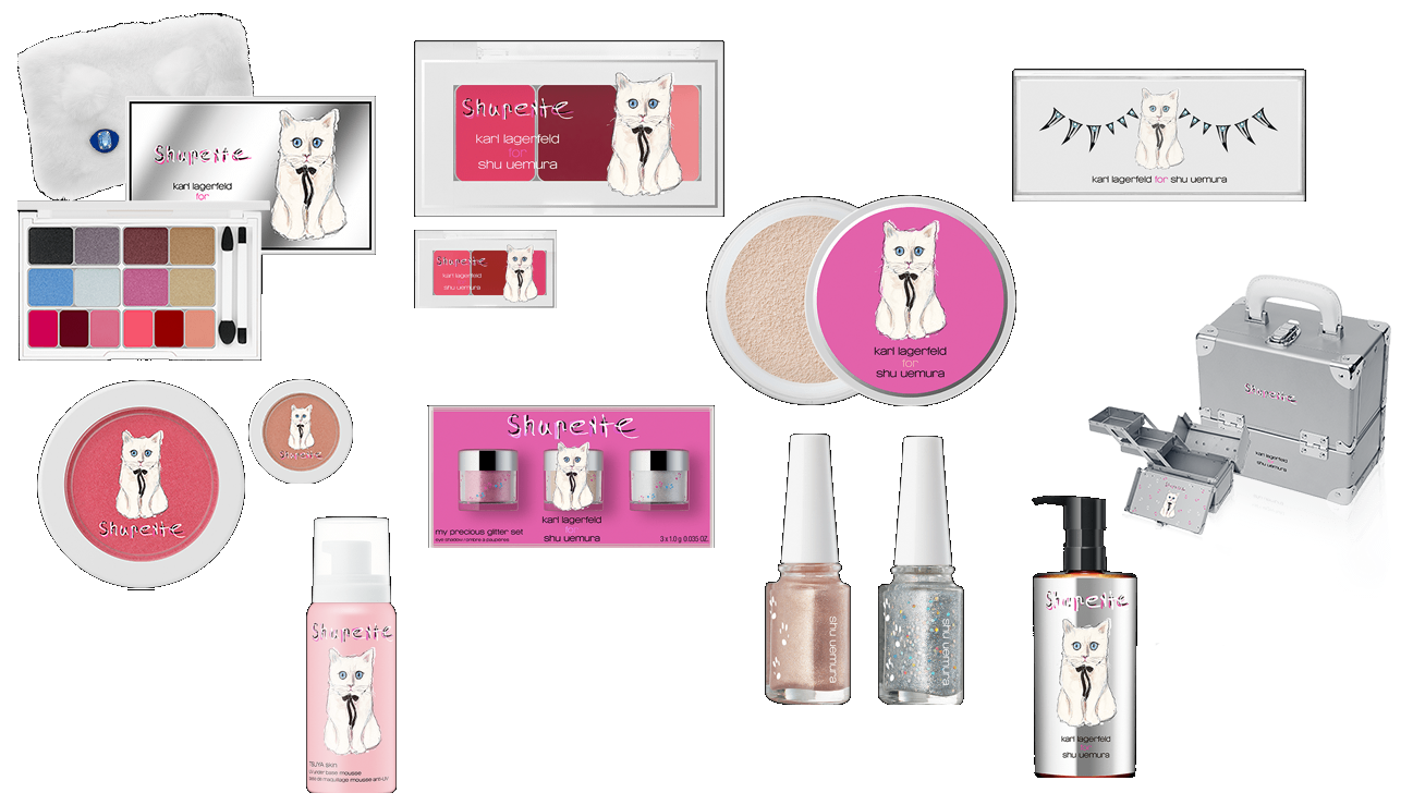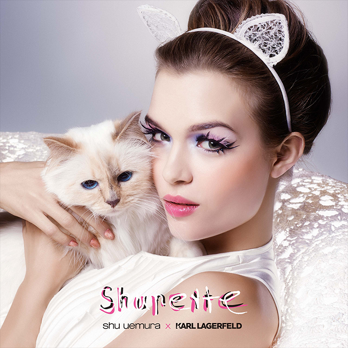 C’est fait, le mariage de Choupette et Shu Uemura a donné naissance à Shupette, la ligne de maquillage kawaï. L’ombre de Karl Lagerfeld traine sur cette collection girly pleine de bonne humeur. Pommette rose ou brugnon garantie et cils étoffés en prévision.