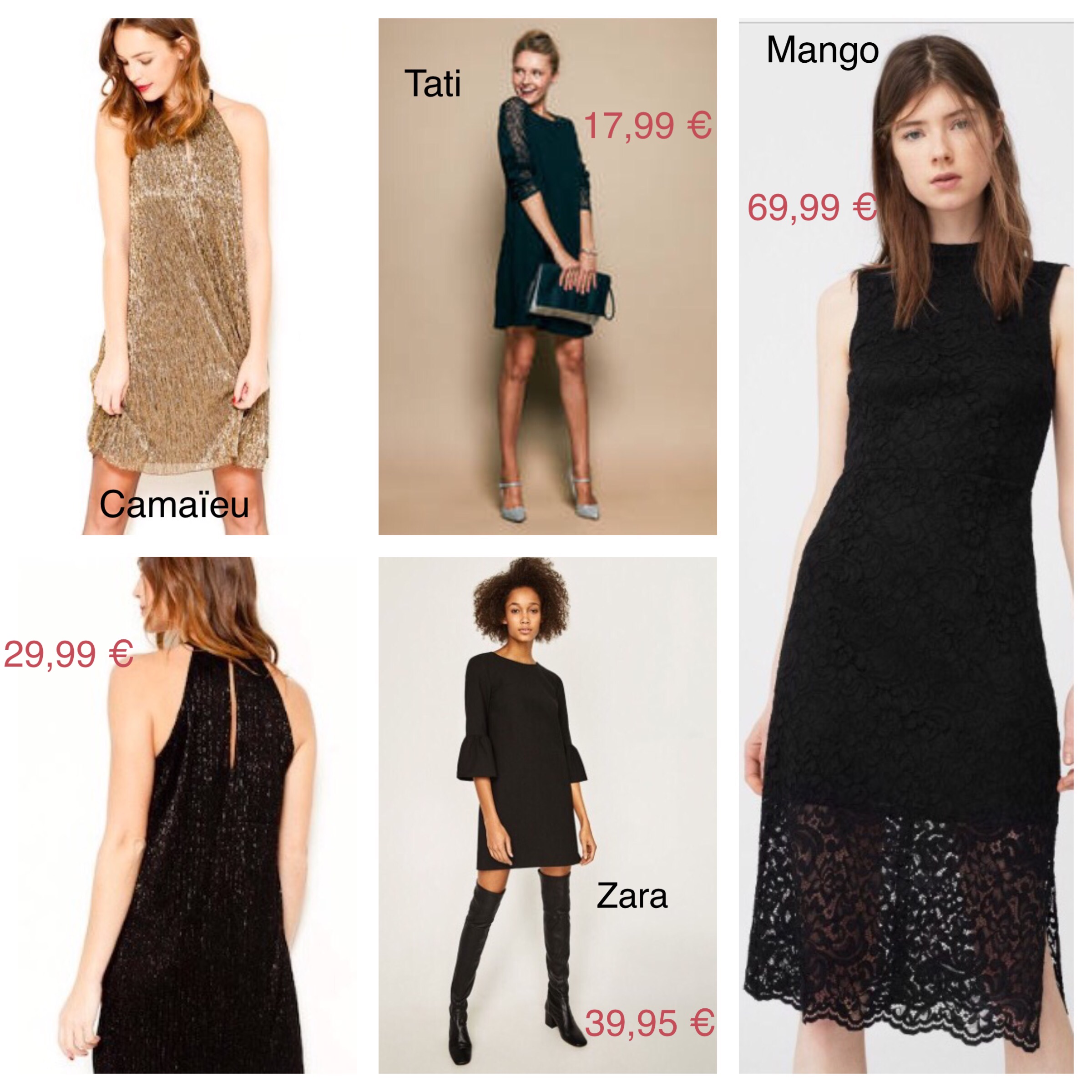 Pour moi, cette année, la tenue de fêtes idéale, c’est UNE ROBE ! Et pour cette occasion, ma préférence va vers le noir, le doré, la dentelle et les paillettes.