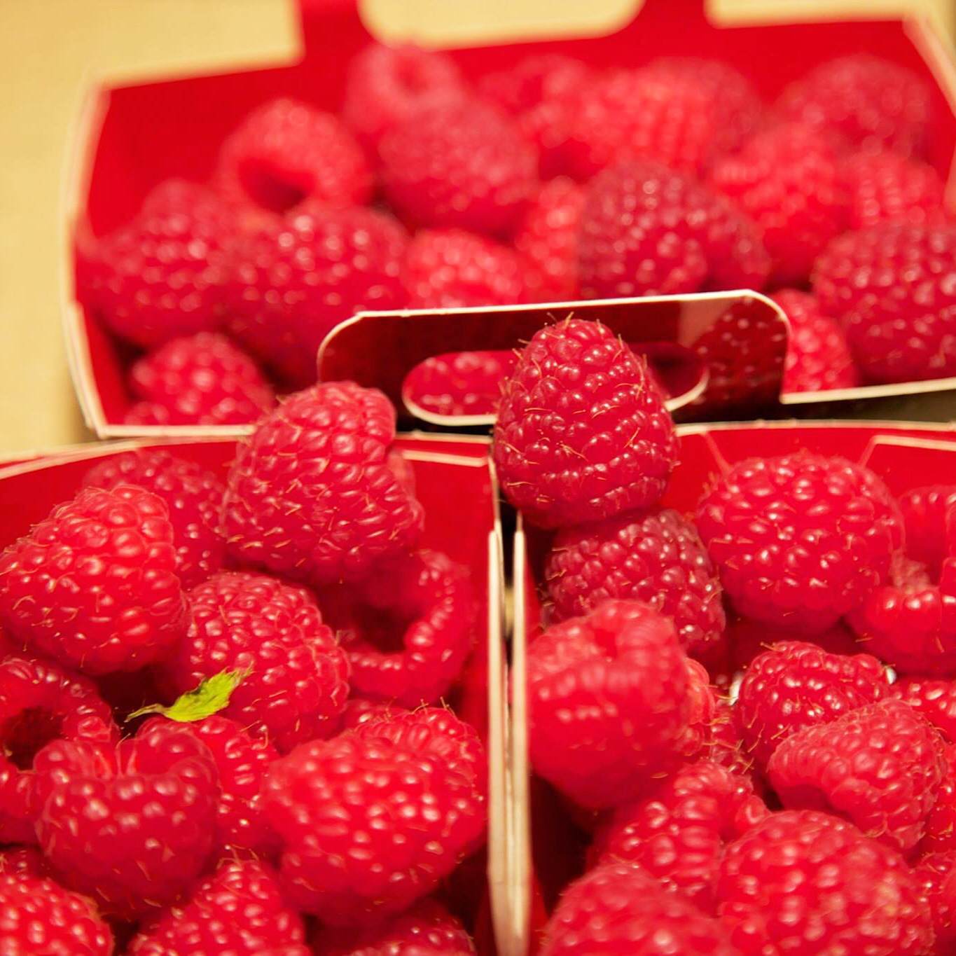 FÉLICITÉ : Crème fouettée au chocolat, poires et framboises.