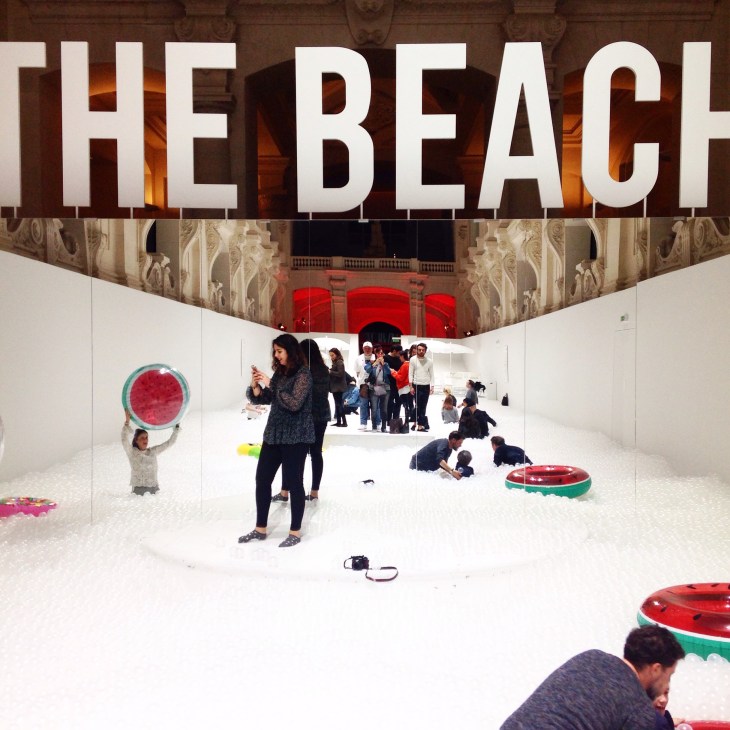 Ainsi, le Musée des arts décoratifs, à deux pas du musée du Louvre, s’est transformé en piscine à bulles géantes. Petits et grands étaient conviés à se rendre au sein de la Nef du musée pour se plonger dans les bulles transparentes, le tout dans un décor de rêve … Transat et buée sur un fond sonore, ambiance plage garantie !