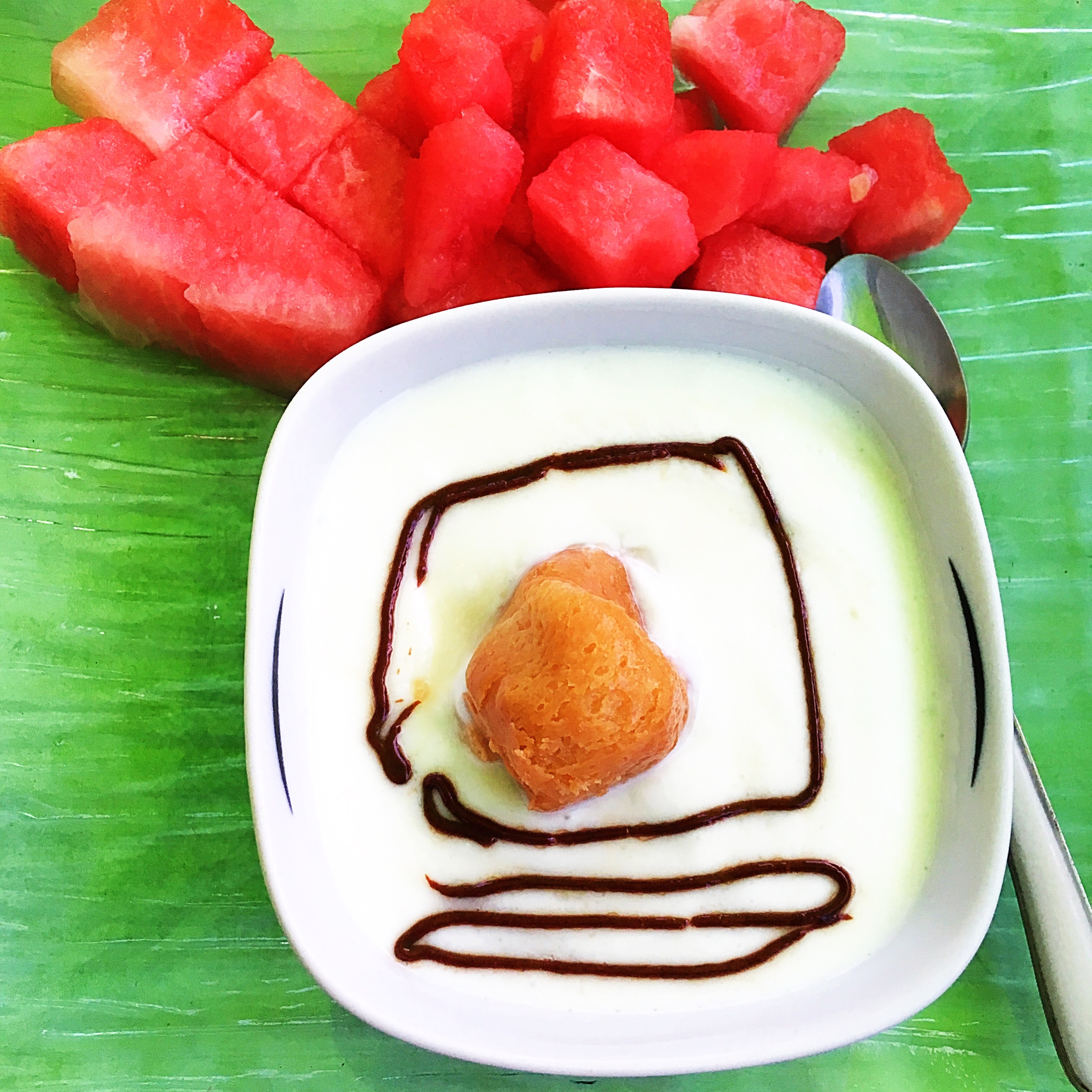 Quoi de plus triste qu’un fromage blanc tout seul. Un coulis de chocolat ou caramel, accompagné de morceaux de pastèque et votre dessert a une meilleur allure et un meilleur gout.