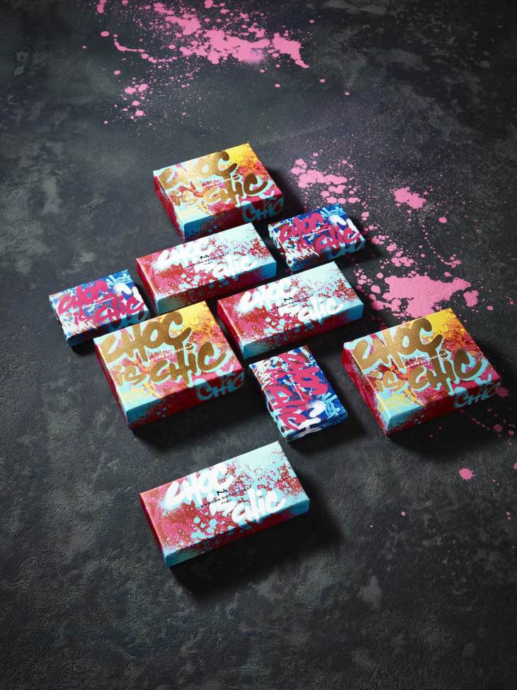 Chaque boîte est une véritable œuvre d’art à offrir ou tout simplement pour se faire plaisir. On croque du street Art, on admire du chocolat artisanal. Deux univers si opposés qui par l’audace et la folie de la Maison du Chocolat se marient et se complètent à merveille.