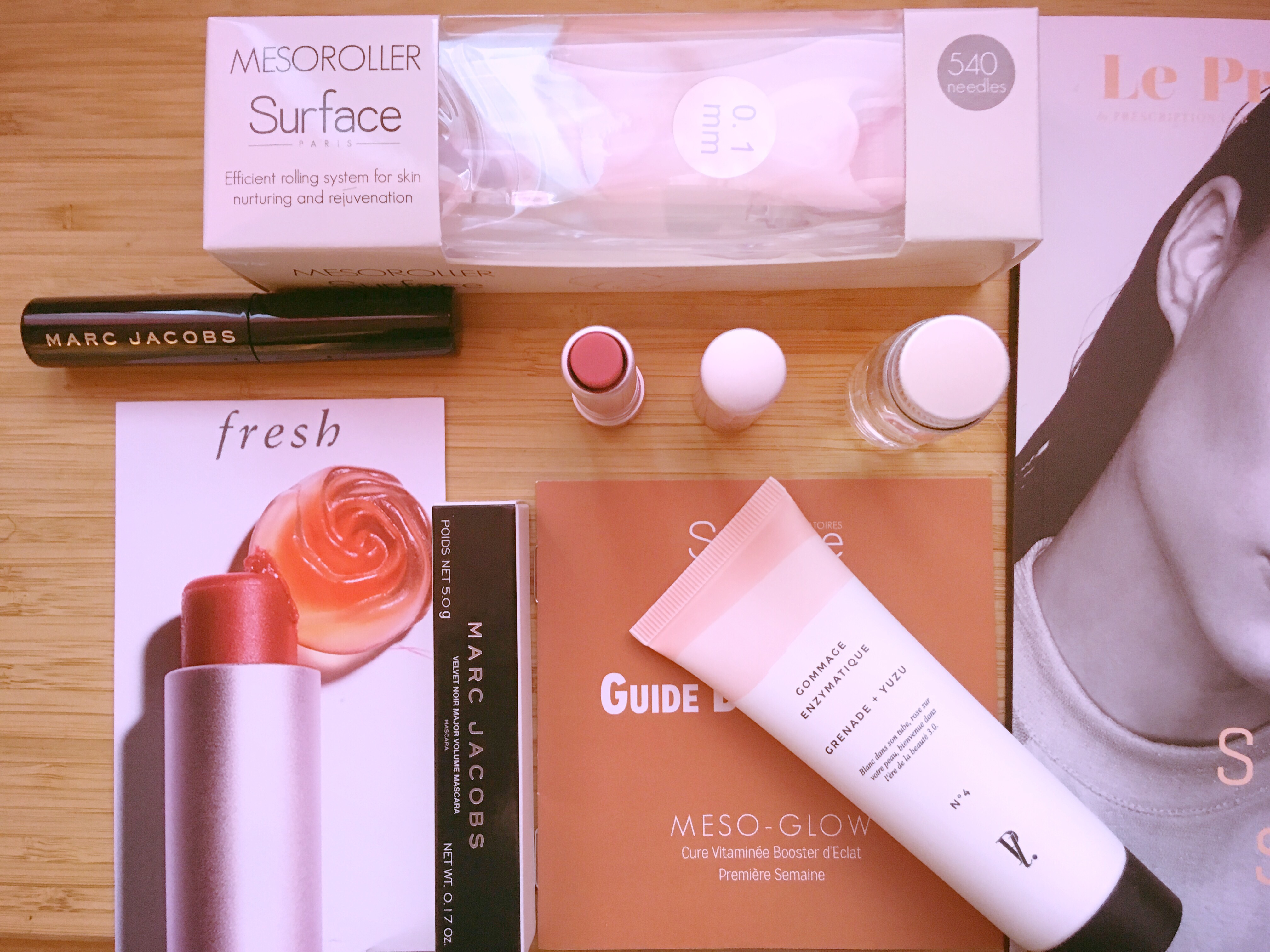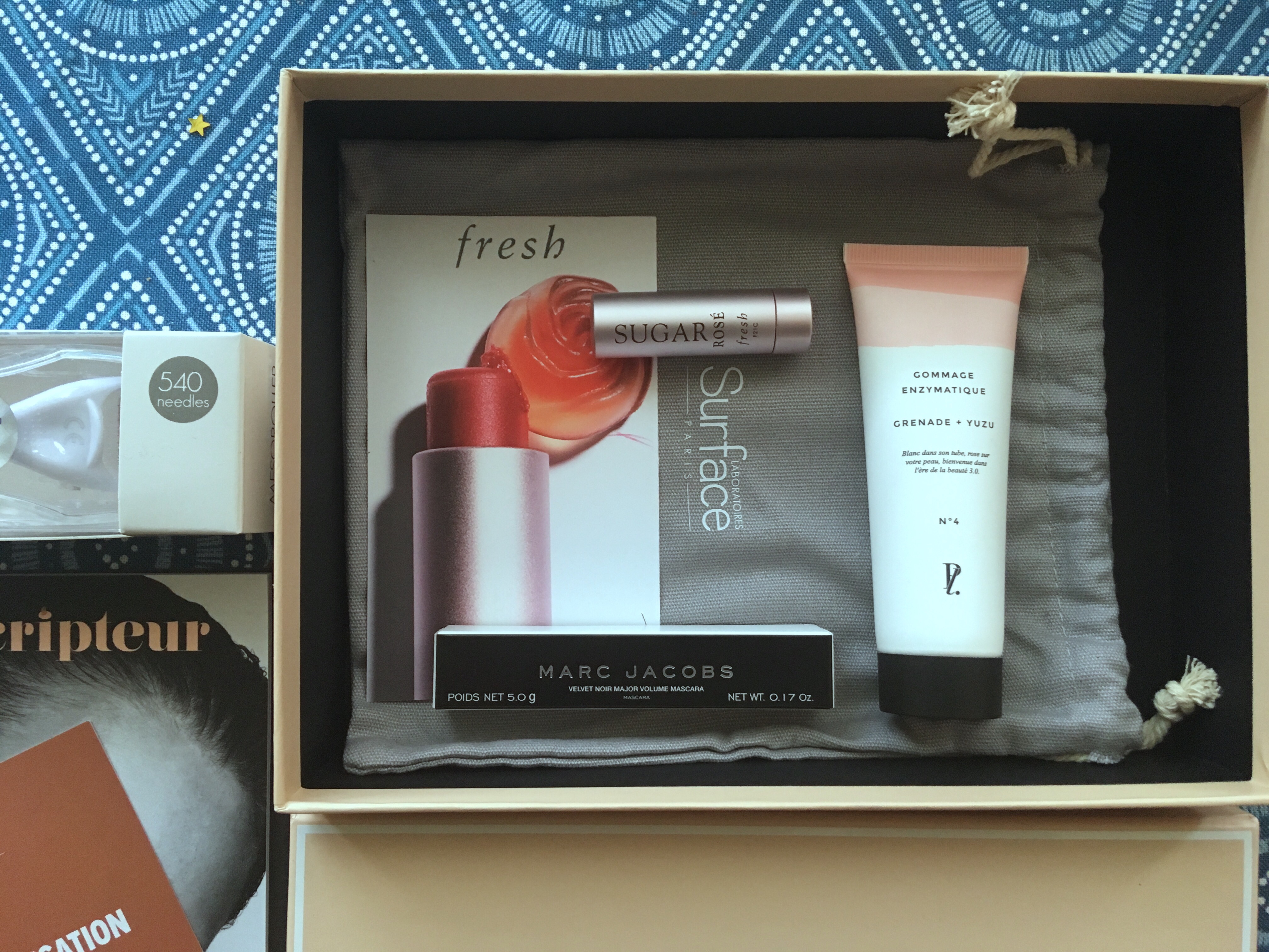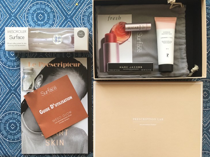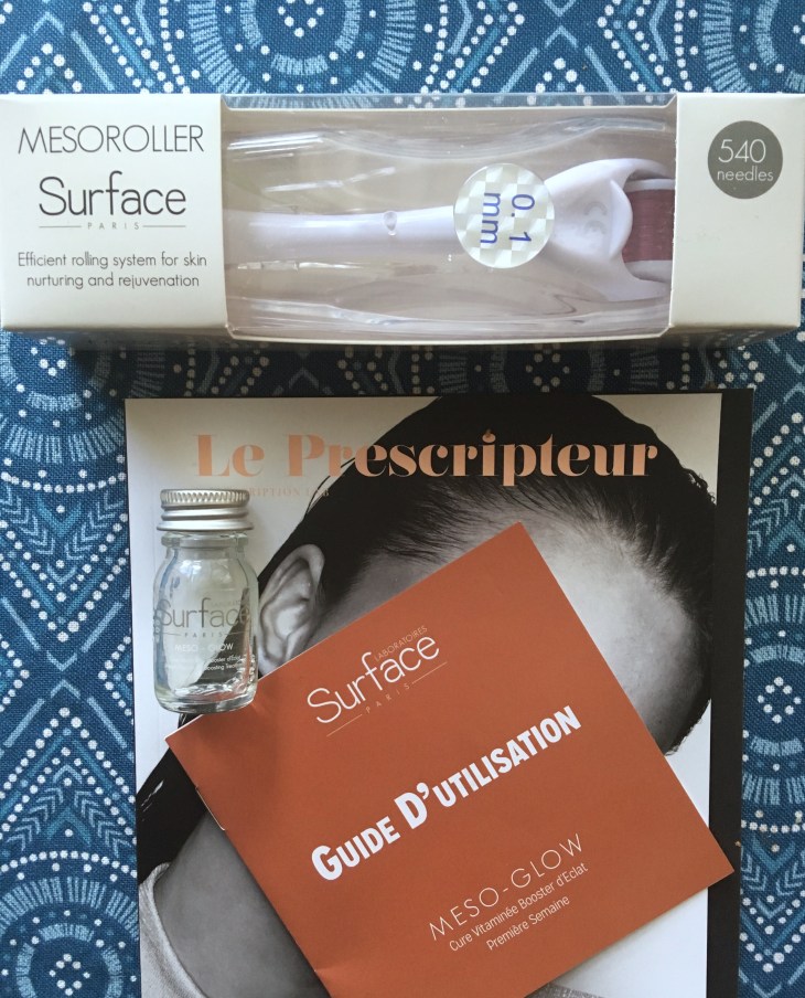 Tout d’abord, j’ai été intriguée par l’accessoire offert Surface, le Mesoroller et la lotion Meso Glow fourni avec. Je l’ai testé et … je vous en parlerai dans un article à part. C’est le must de la box.