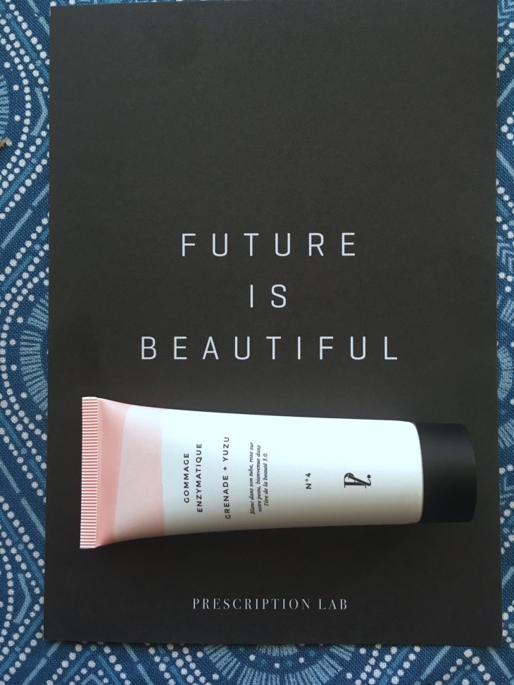 Deuxième produit reçu : le gommage enzymatique à la grenade et au yuzu de Prescription Lab. Il devient rose lorsque l’on gomme son visage avec, par mouvement circulaire.