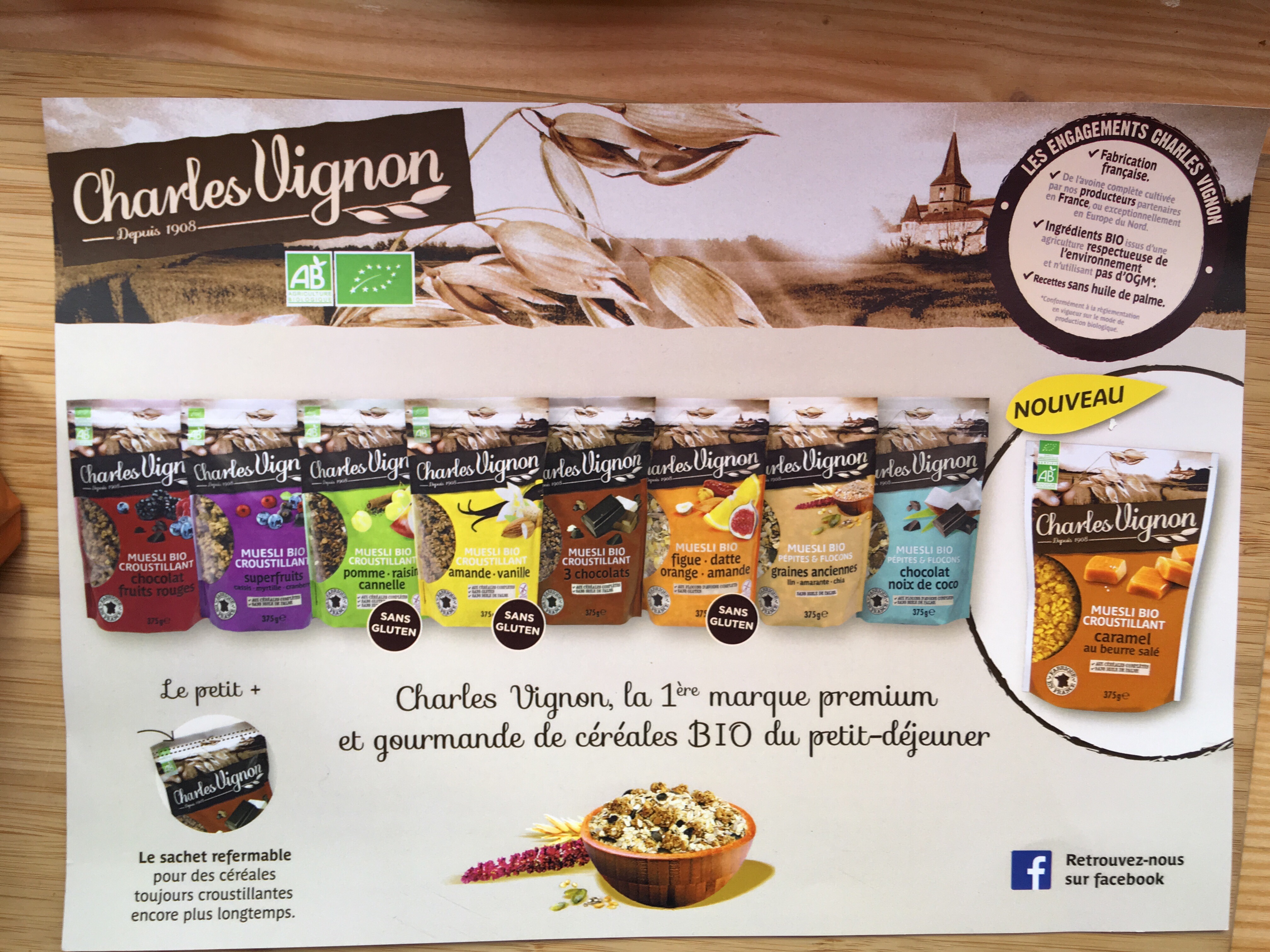 De fabrication française, Charles Vignon est le premier à mettre en place un petit déjeuner d’excellence biologique avec certains paquets sans gluten.