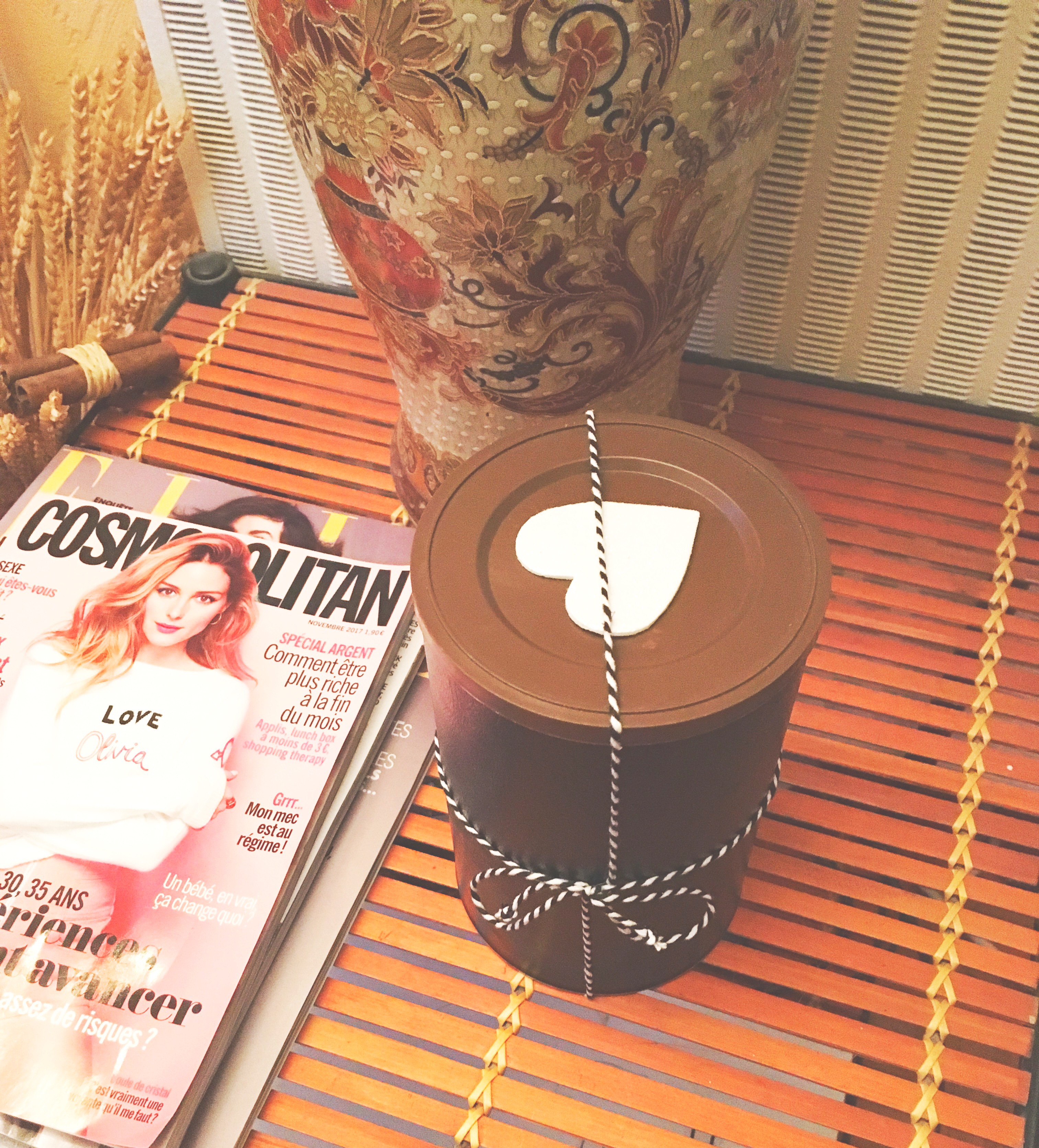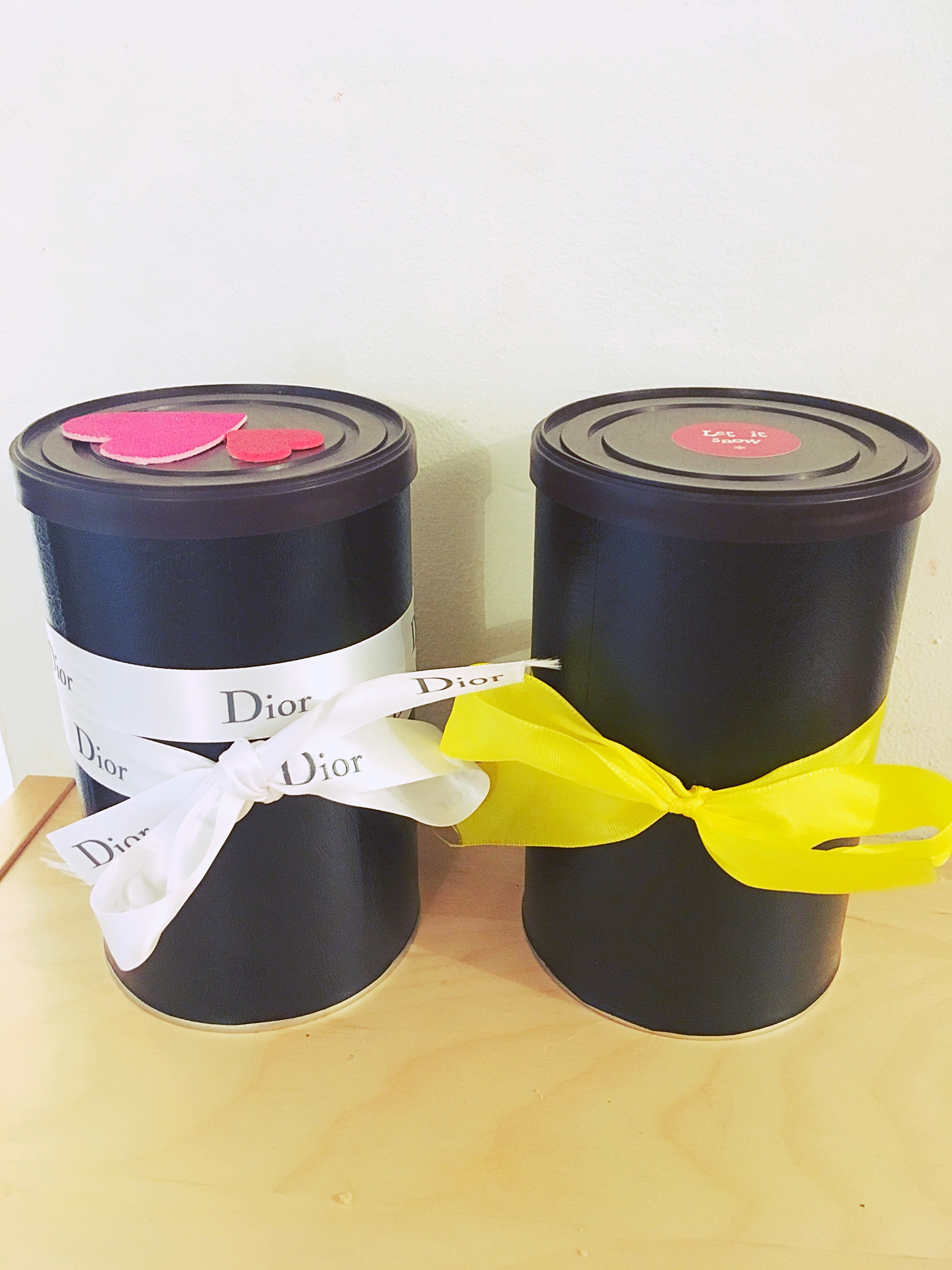 Il vous faut des boites de type Ricoré, des rubans ou des cordons de couleur (mettons de côté le bolduc trop vu), quelques stickers à coller, du scotch, du papier collant imitation cuir et pour les plus téméraires (en option) de la bombe de peinture.