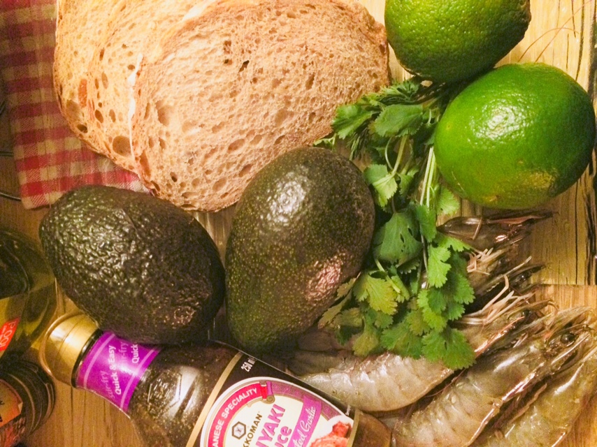 Gambas Teriyaki et toast à l’avocat