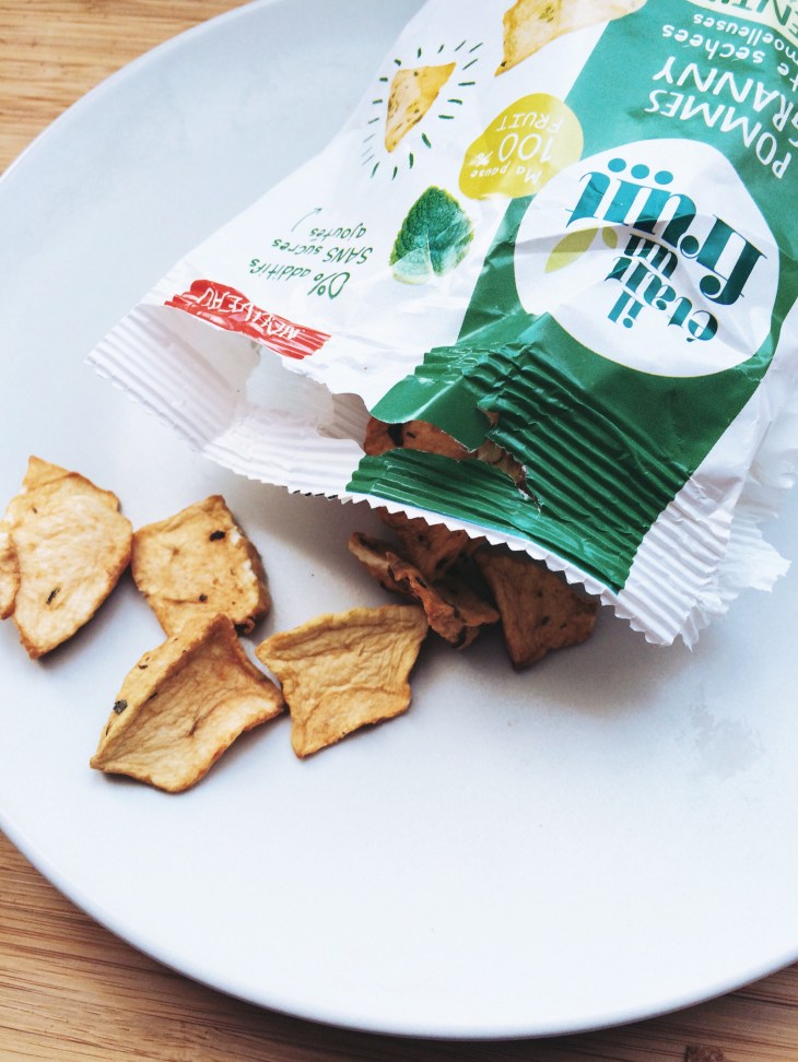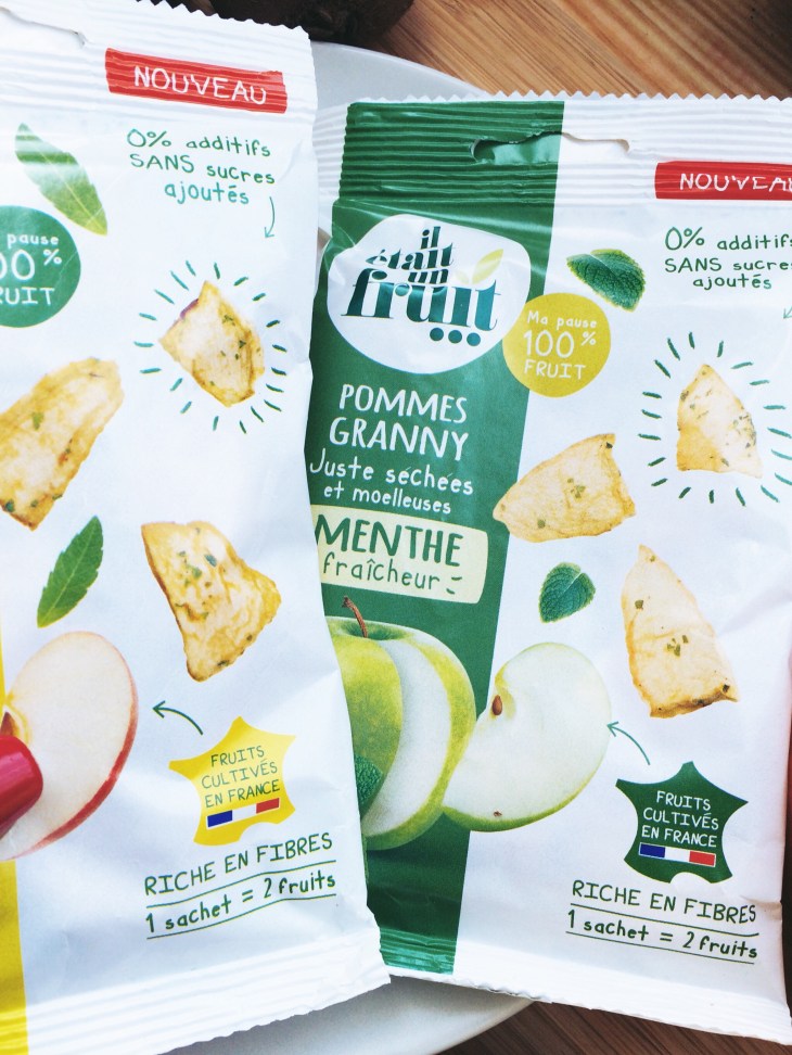 A l’intérieur du sachet, les 2 fruits certes mais surtout des saveurs puisque le fruit est préparé avec des aromates comme la verveine et la menthe. Cela se mange comme des chips, les vitamines et les fibres en plus, sans les calories. Un sachet ne dépasse par les 94 calories, comme je l’ai dit plus haut.