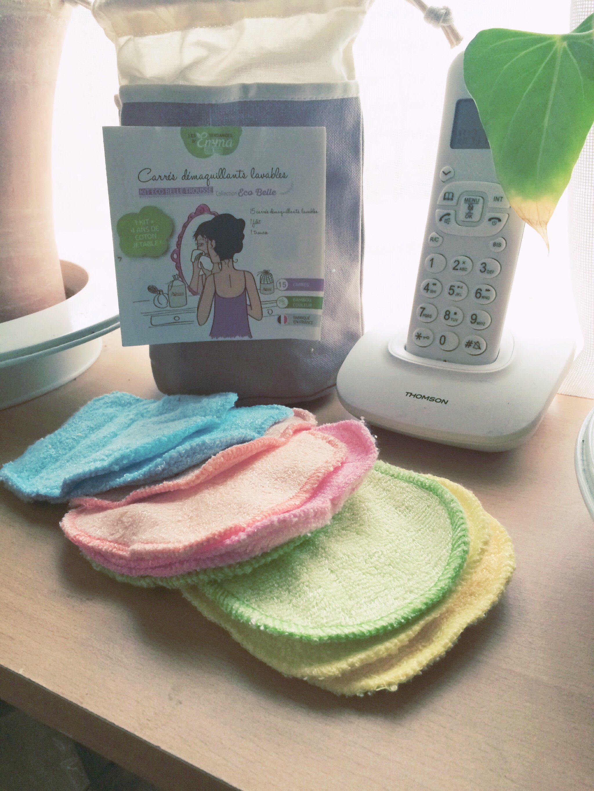 On aime : les carrés à acheter en supplément : Kit Eco test beauté – 3 carrés pour essayer les 3 matières à 5€. Les matières sont EUCALYPTUS BIFACE, BAMBOU et COTON BIO BIFACE.