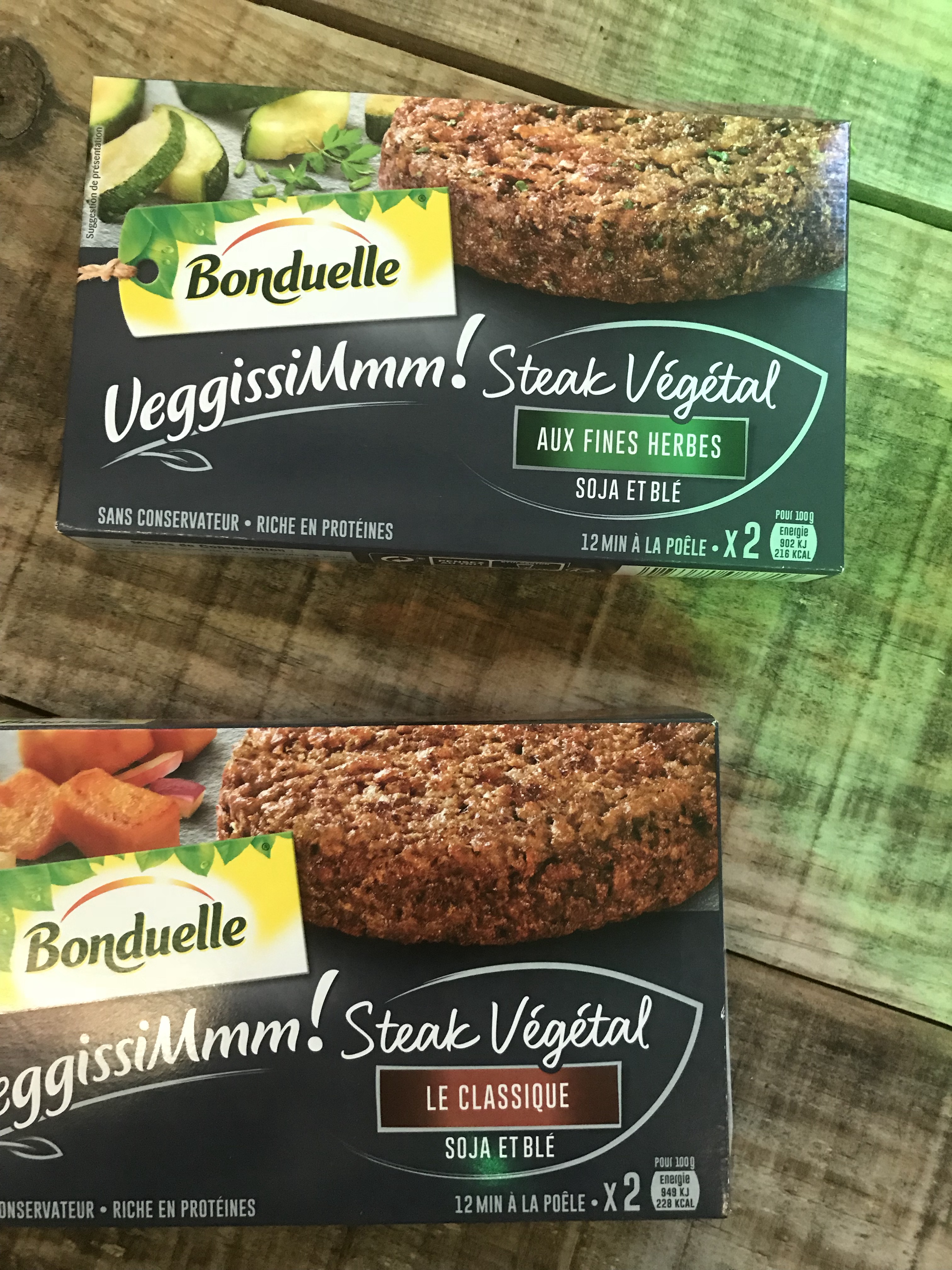 Le pavé croustillant vous séduira par le savant mélange des légumes de soleil et pour ceux qui tiennent absolument à l’illusion d’avoir un morceau de viande dans leur assiette, Bonduelle a créé le steak végétal classique ou aux fines herbes. Le tout sans conservateur, sans l’huile de palme (merci Bonduelle d’avoir pris la décision de ne pas participer à la déforestation ! ) sans arôme artificiel.