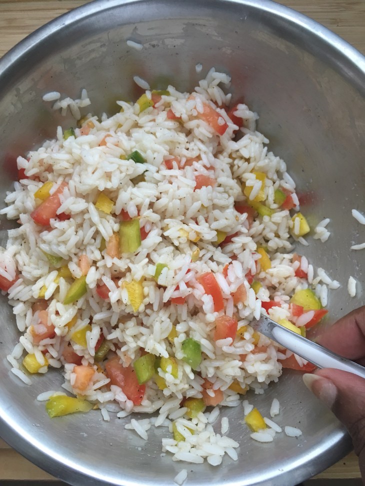 Pour les INGREDIENTS, il vous faut du riz de camargue, 2 ou 3 poivrons, une grosse tomate, de l’origan ou du thym, du sel, du poivre.