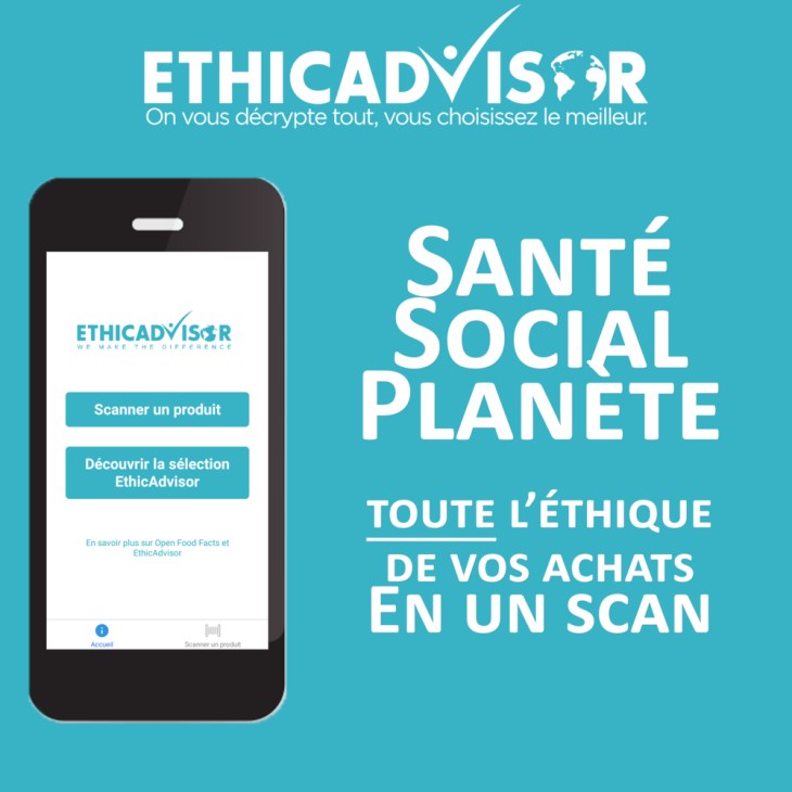 L’application ETHICADVISOR, téléchargeable depuis votre téléphone, est une mine d’or pour recueillir toutes les infos sur les produits avant de les acheter. Fini la consommation à tout va, réfléchissons avant, consommons mieux.