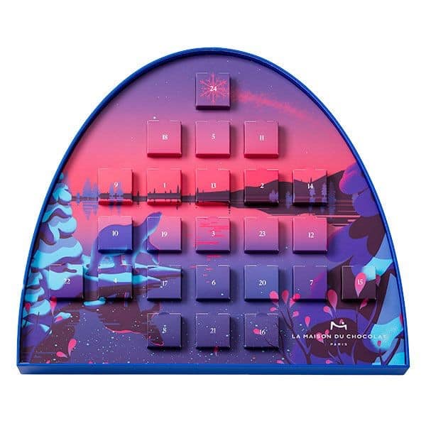 Pour vous faire patienter jusqu’au réveillon, on mise tout sur le sublime calendrier de l’avent composé de 24 attentions chocolatées.