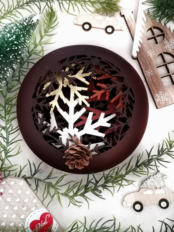 Une création d’une beauté absolue, un travail d’orfèvre hors pair qui a exigé des longues heures de travail pour réussir les 2000 perforations, ciselées 150 flocons de tailles différentes sur 5 parois.