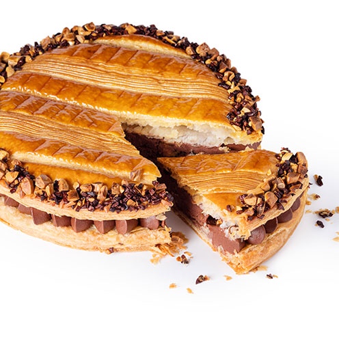 La pâte feuilletée épouse et enveloppe avec amour et poésie la force du chocolat et le croquant des amandes, un tourbillon de saveurs à dévorer sans modération. Le plus difficile est d’accepter de la partager.