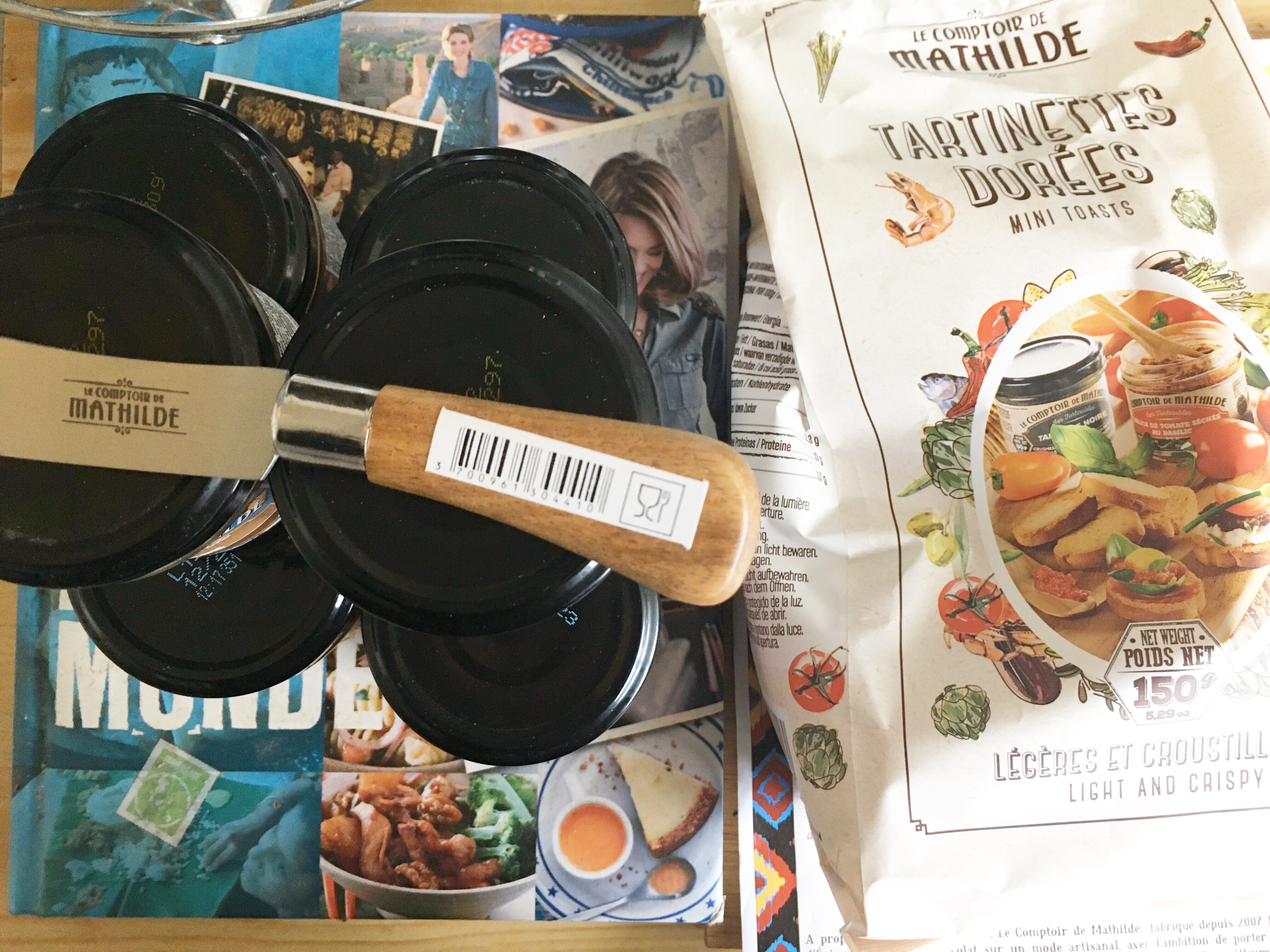 Nous avons reçu un paquet de tartinettes dorées. Croustillantes, ces mini toasts permettent de ressentir toutes les saveurs des tartinades. Et question tartinades, nous avons reçu 6 pots :
