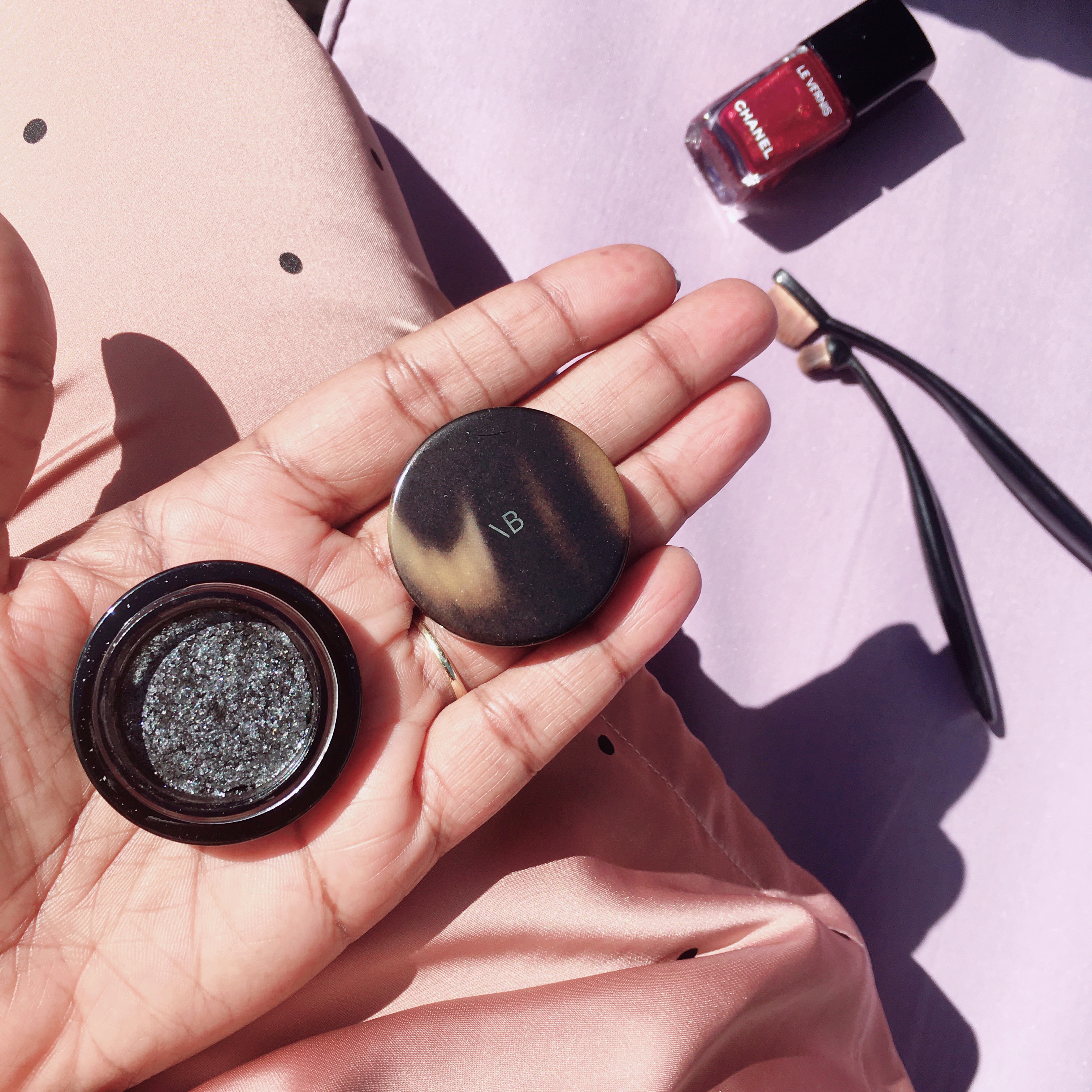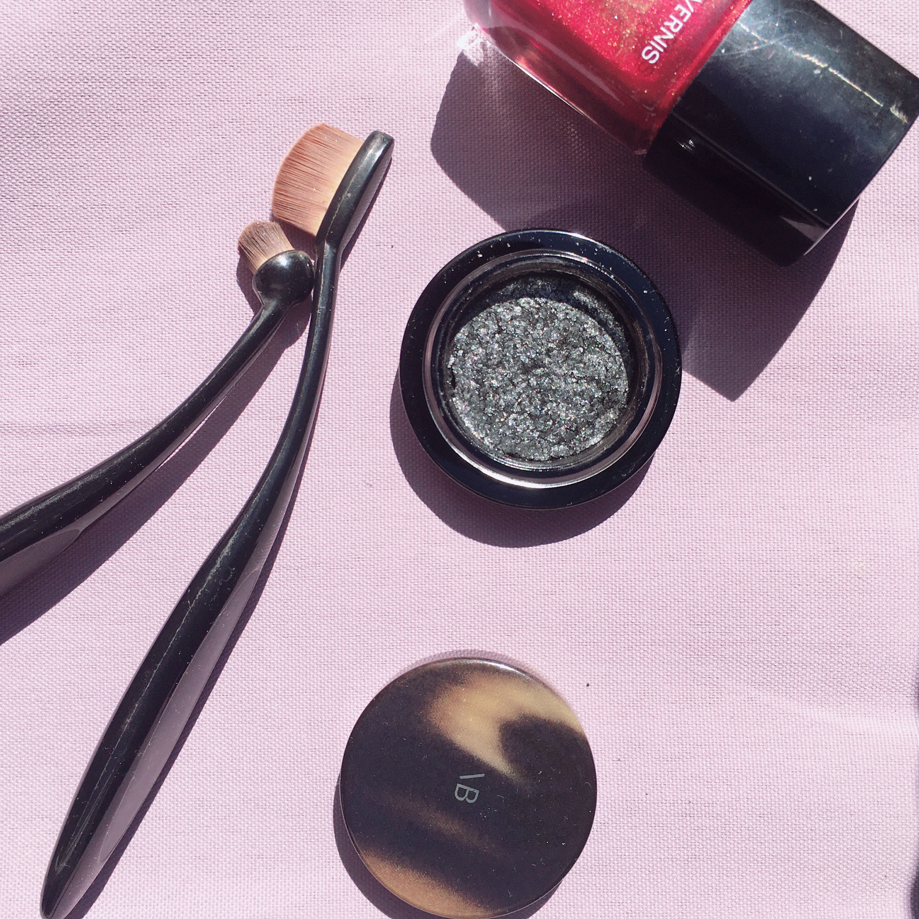 Je vous présente donc LID LUSTER et sa couleur Onyx. Un mélange de fards pigmentés noir, gris et une finition nacrée. Cela donne une certaine brillance au maquillage des yeux, on aime l’effet irisé au final.