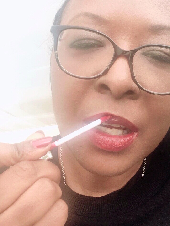 Agréable à porter et facile à mettre avec son pinceau, un miroir n’est pas indispensable, ni un crayon à lèvres. Avant de le poser, je recommande un soin hydratant sur les lèvres, car l’encre assèche un peu, je trouve. Idéalement, un gommage doux pour lèvres une fois par semaine et un peu de beurre de karité pour le geste hydratation. Puis, posez le rouge à lèvres pour des heures de tenue.