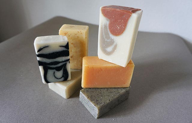 - des savons solides, que vous mouillerez pour faire mousser, puis vous frottez pour la rincer.