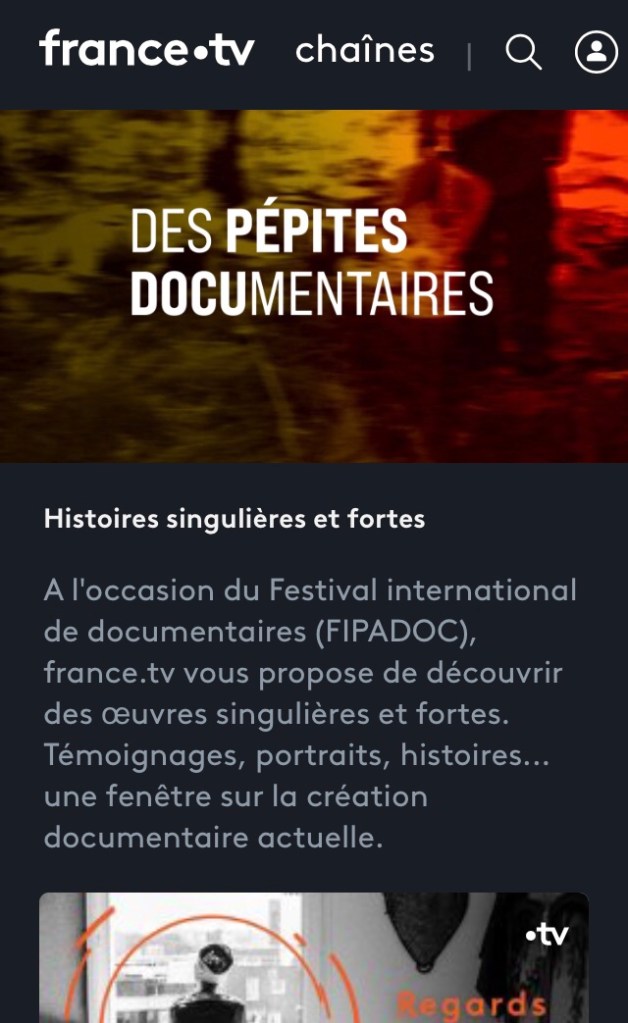 Pour la première fois dans le cadre de son partenariat avec le Festival International des Programmes Audiovisuels Documentaires (FIPADOC), France Télévisions lance un corner évènementiel sur sa plateforme france.tv intitulé « Des pépites documentaires » sélectionnées par le FIPADOC.