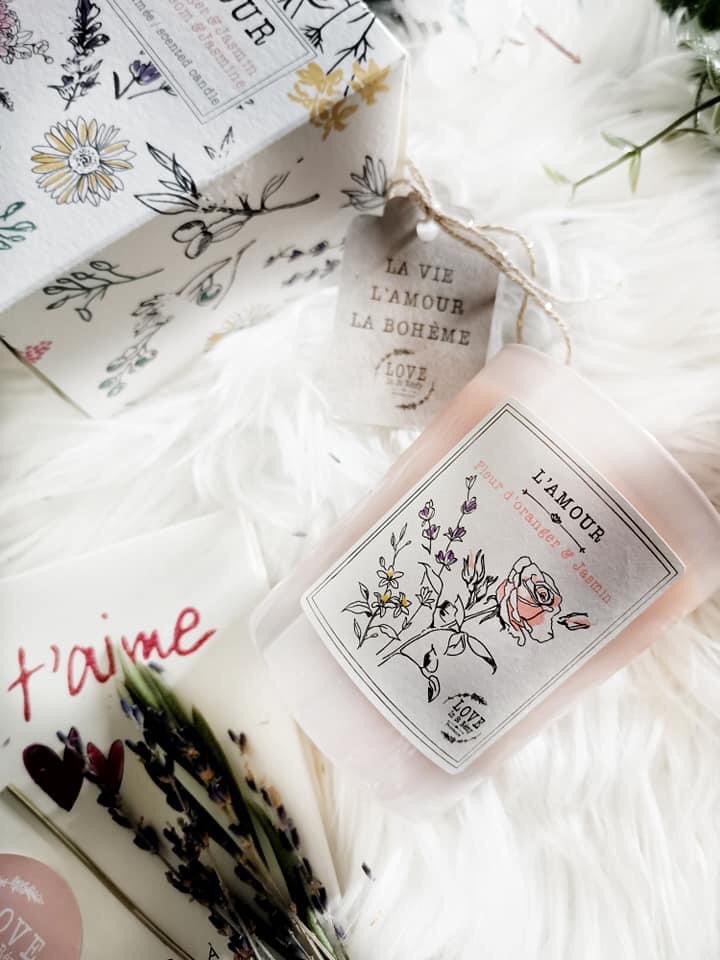 La sublime beauté de ma bougie Amour se propage dans ma chambre, elle danse en diffusant ses notes érotiques à base de la Fleur d’Oranger & Jasmin, symbolisant la pureté des sentiments, au milieu d’un jardin provincial.