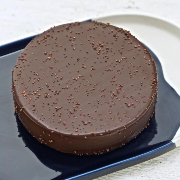 Sans gluten, aux œufs bio, pour faire simple, Christophe Michalak réunit tout ce qu’il aime dans un jeu de sensation et de textures déconcertantes. Du praliné lisse très caramélisé en hommage au « Figaro » de La Maison, des noisettes du Piémont grillées, de la ganache noire particulièrement ronde et chocolatée en clin d’oeil au « Quito » un biscuit épais et dense au chocolat fondant, le tout enrobé d’un glaçage au chocolat parsemé de grès de cacao.