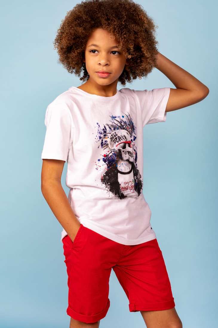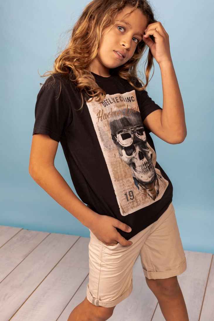 Issu de cet univers, #deeluxekids propose des tenues moins formelles que le genre classique constituées de t shirt pour garçon Deeluxe.