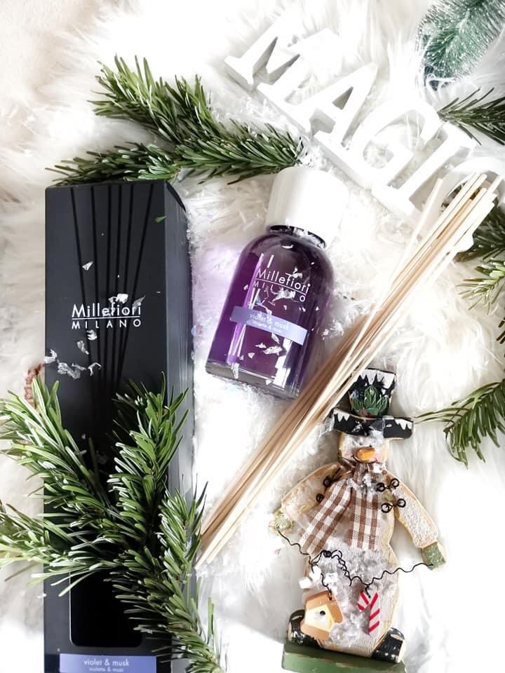 La marque italienne Millefiori Milano propose un diffuseur de parfum très desig, aussi épuré que tendanc il habille votre intérieur d’un voile à la Violette & Musc grâce à ses bâtonnets.