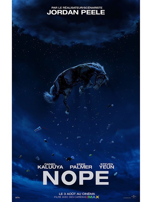 NOPE tourné à 40% en IMAX et en totalité à l’aide d’un grand format 65 mm avec pellicule à 5 préformations, à l’exception de la séquence de la série télévisée de 1997, tournée sur du 35 mai comme cela aurait été le cas à l’époque.