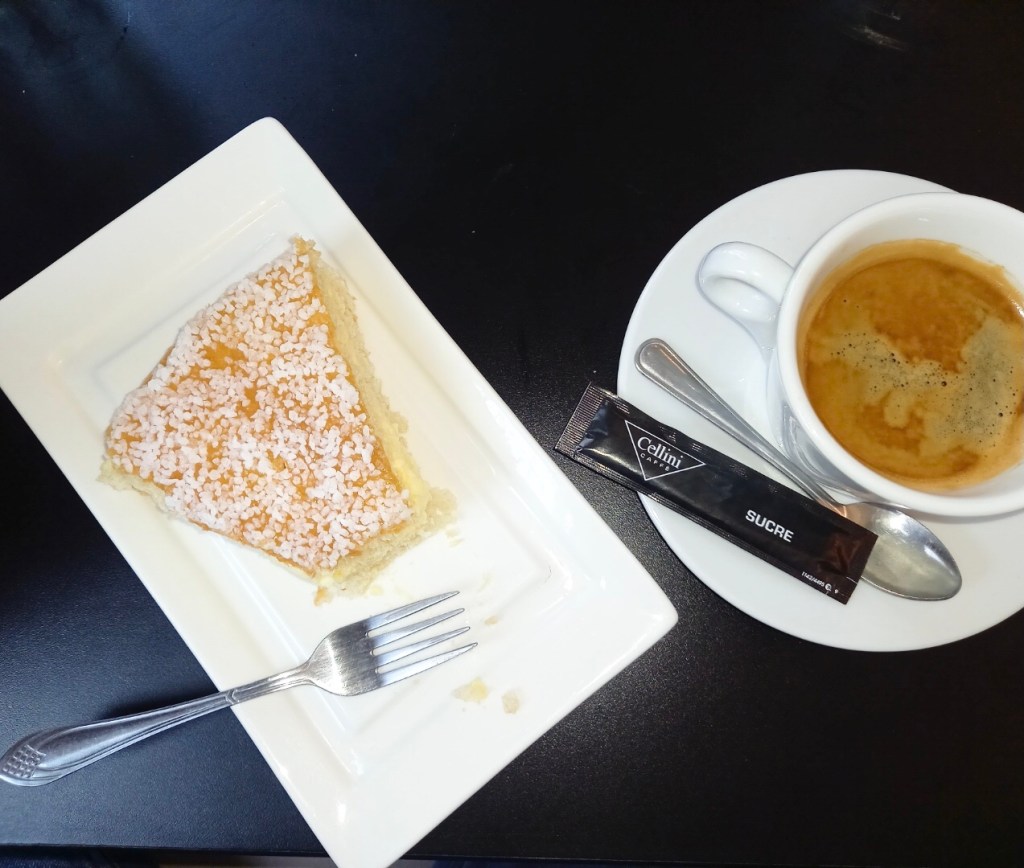 Question rapport qualité prix, c’est excellent. Laissez vous tenter comme nous par la formule Entrée + Plat + Dessert à 20 € : une petite salade, le plat du jour ( j’ai succombé au médaillon de poulet et chorizo) et le dessert ( j’ai hésité entre la tarte tropezienne et la tarte aux abricots) plus un jus d’abricot.