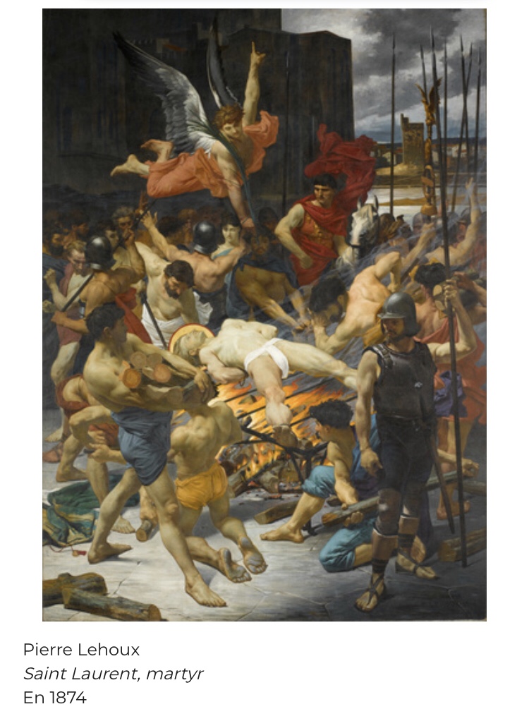 Pierre Lehoux est né le 9 août 1844. 30 ans plus tard ce peintre français formé aux beaux arts termine l’œuvre Saint-Laurent martyr que l’on retrouve puis restaure en 2005. Féru d’histoire et talentueux, l’œuvre lui a d’ailleurs valu le prix du salon. Le tableau est exposé au musée d’Orsay. Le peintre s’éteint en 1896.