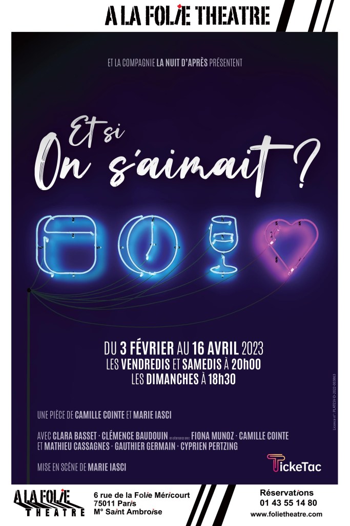 L’histoire : 6 comédiens incarnent 28 personnages en quête d’amour, plongés dans ce moment magique et terrifiant : le rendez-vous amoureux. « Et si on s’aimait ? » pose la question de la rencontre amoureuse, celle que l’on espère, celle que l’on redoute, celle que l’on fantasme. Après tout, nous sommes cernés par l’amour. À l’heure où l’autre semble à portée de smartphone avec les applications de rencontre, est-ce vraiment devenu plus facile de boire un verre en terrasse en face de quelqu’un qui nous plait ? »