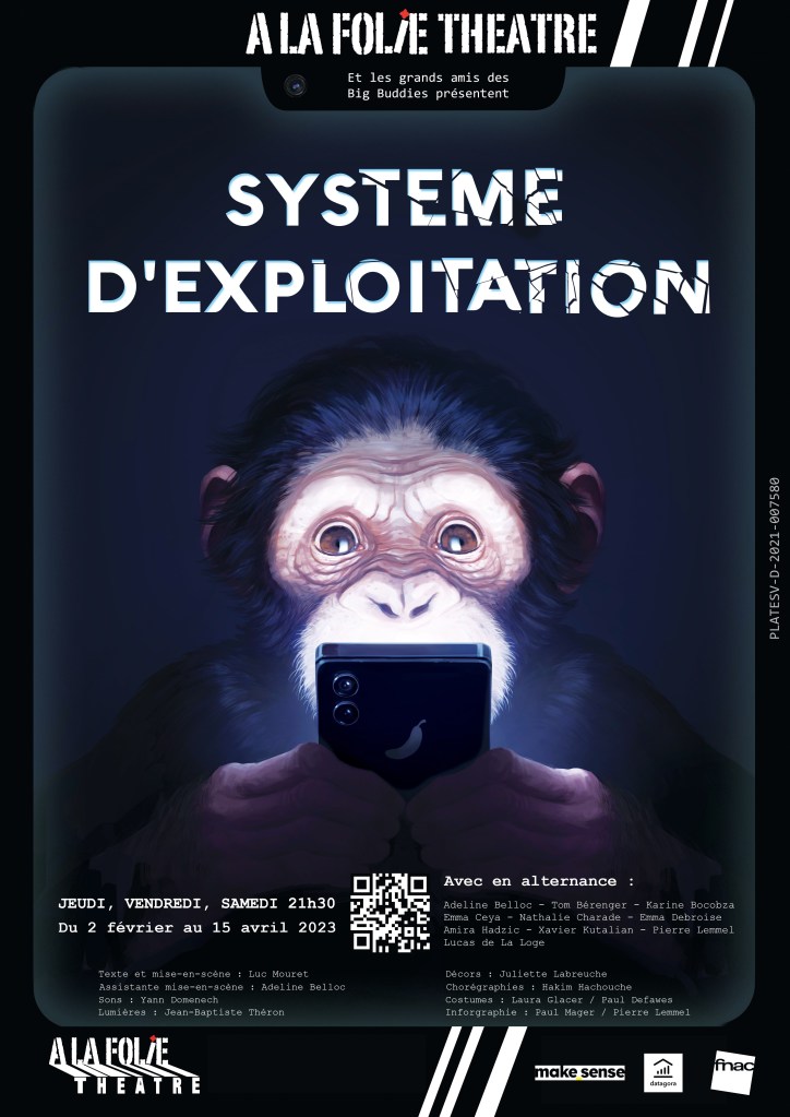 L’histoire : La pièce traite avec force et humour des conséquences de la surabondance des écrans dans notre vie quotidienne. Comment ne pas devenir fou quand les écrans sont partout ? Dans un futur proche, alors que la crise écologique et économique s’accélère, les citoyens restent scotchés à leur smartphone. Deux coups de feu résonnent dans une « agence sociale » récemment privatisée. L’intelligence artificielle « Minotaure » mène l’enquête..