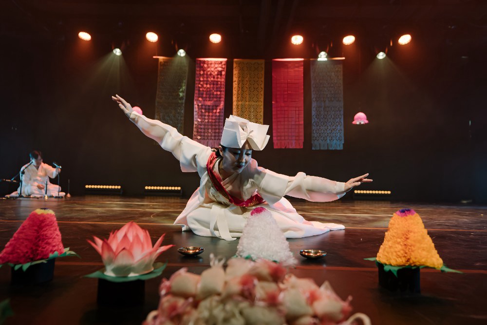 La compagnie coréenne Baru invite à une immersion sensible dans les croyances fondatrices du pays, entre chamanisme et bouddhisme, pour célébrer l’éternelle Naissance et l’Éveil du Bouddha.